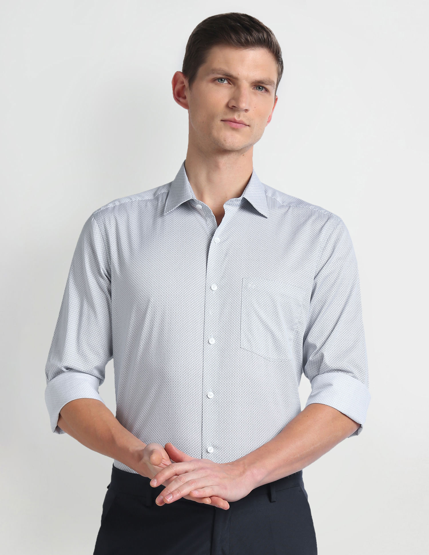 Geometric Print Twill Auto Press Shirt