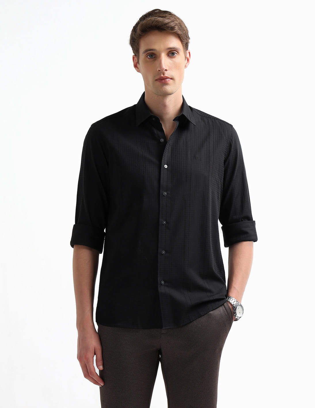 Self Design Vertical Striped Slim Fit Shirt