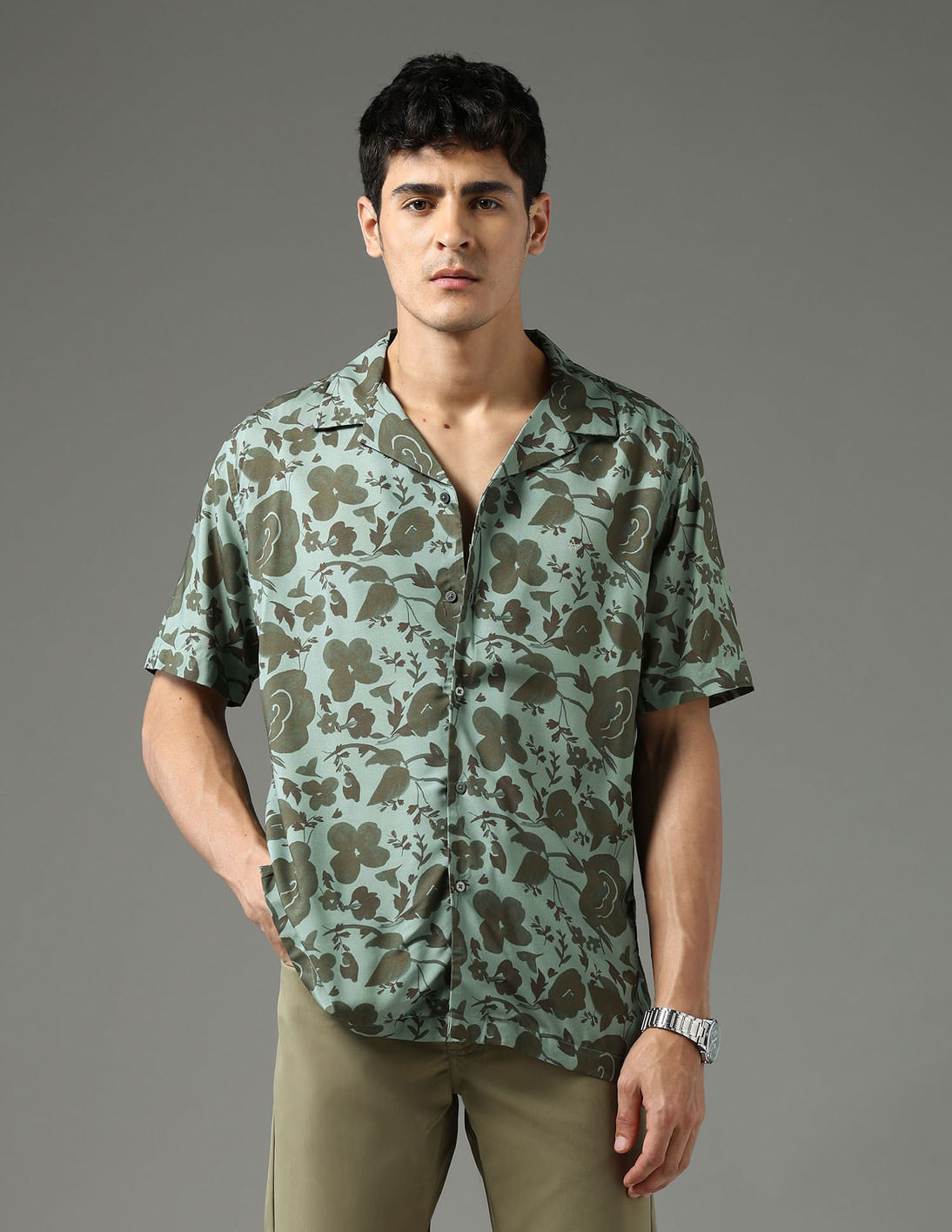 Slim Fit Floral Printed Night Is Young Shirt