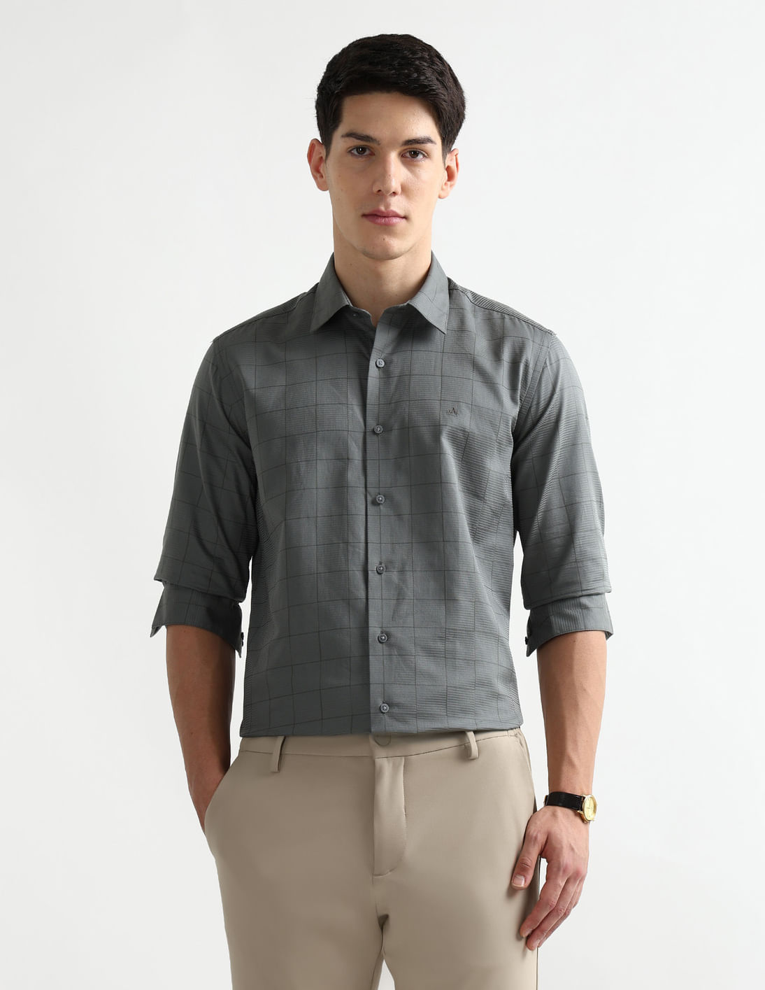 Windowpane Checked Manhattan Slim Fit Shirt