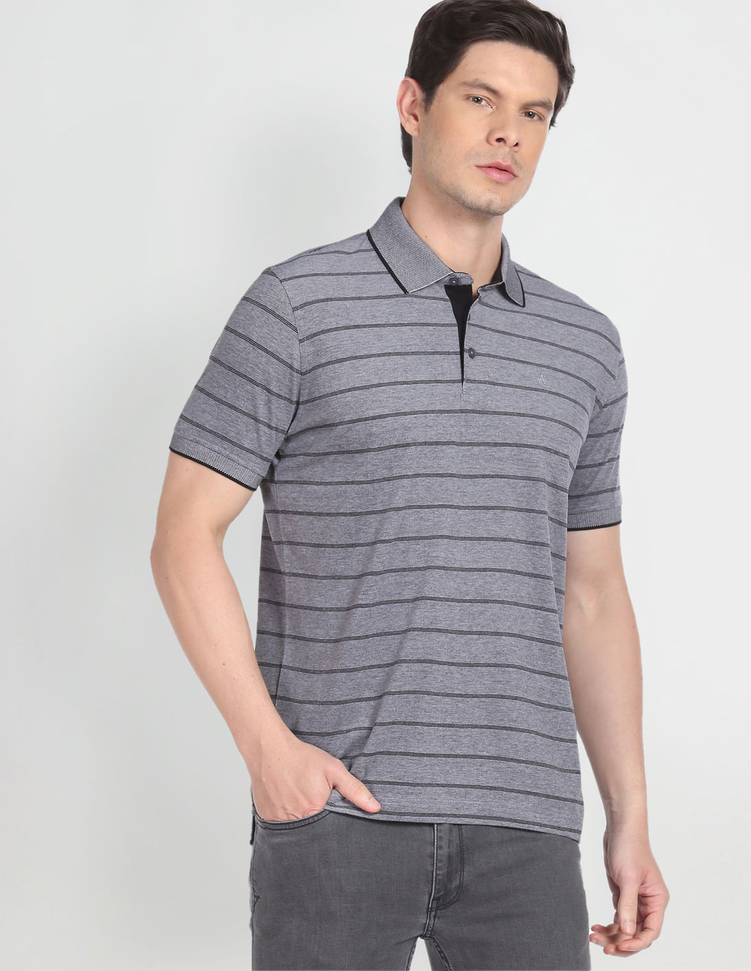 Ribbed Collar Horizontal Stripe Polo Shirt