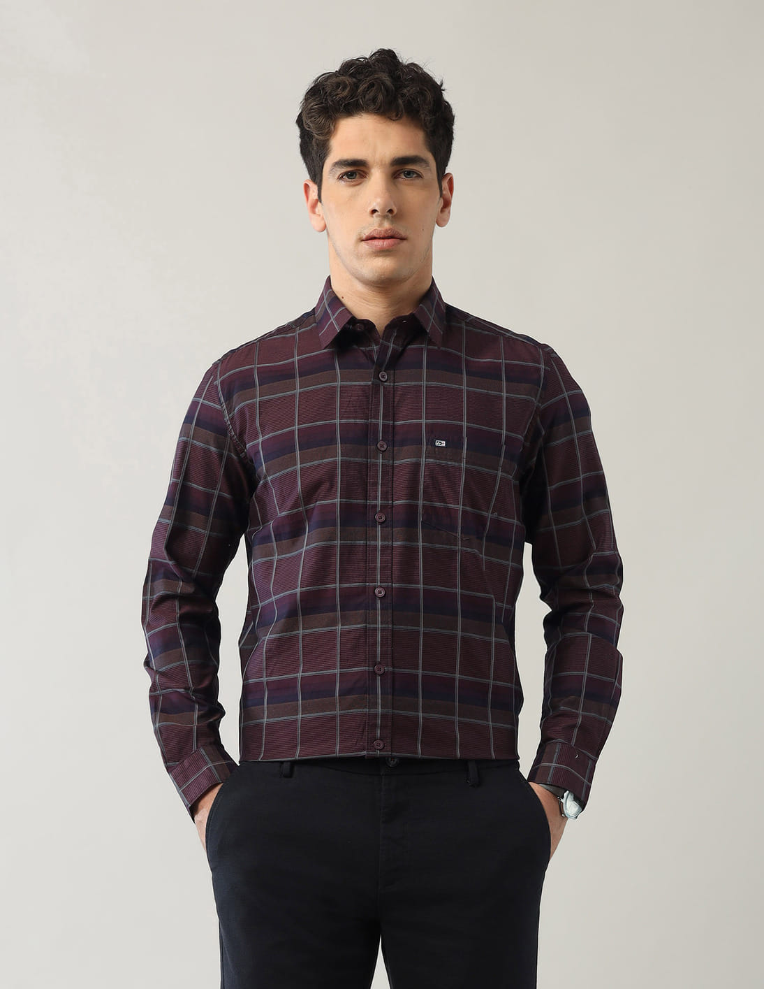 Pure Cotton Windowpane Checked Shirt