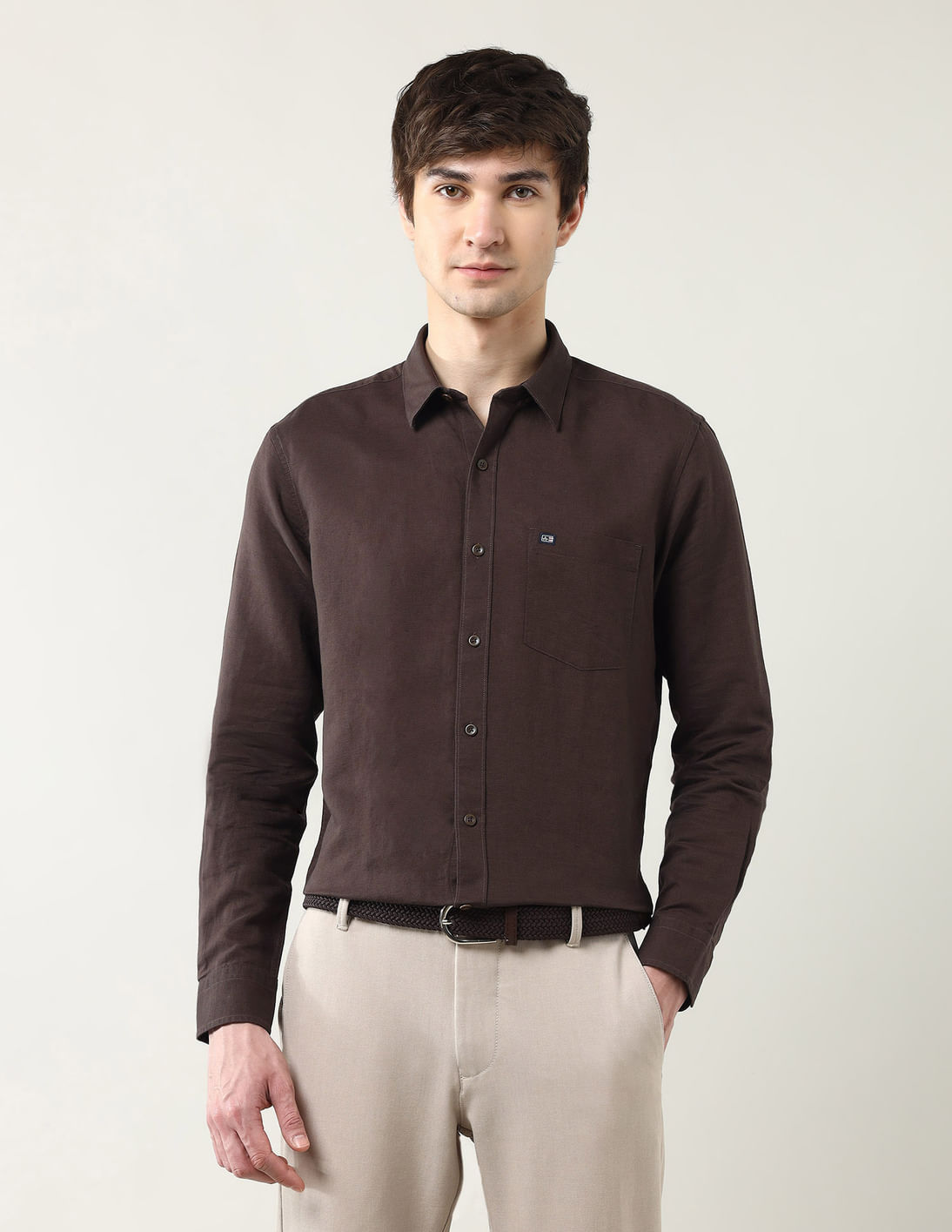 Regular Fit Solid Pure Linen Shirt