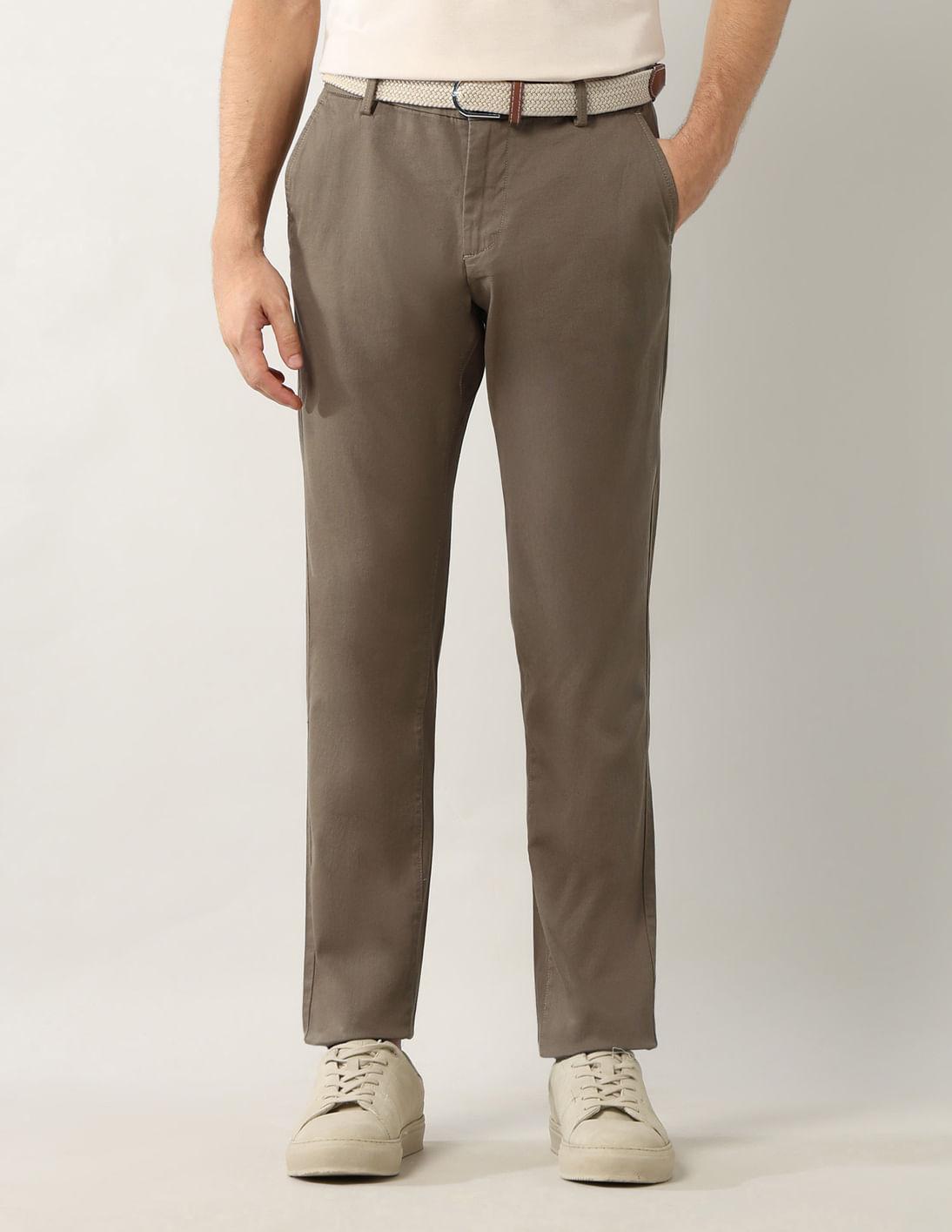 Slim Fit Dobby Weave Solid Trousers