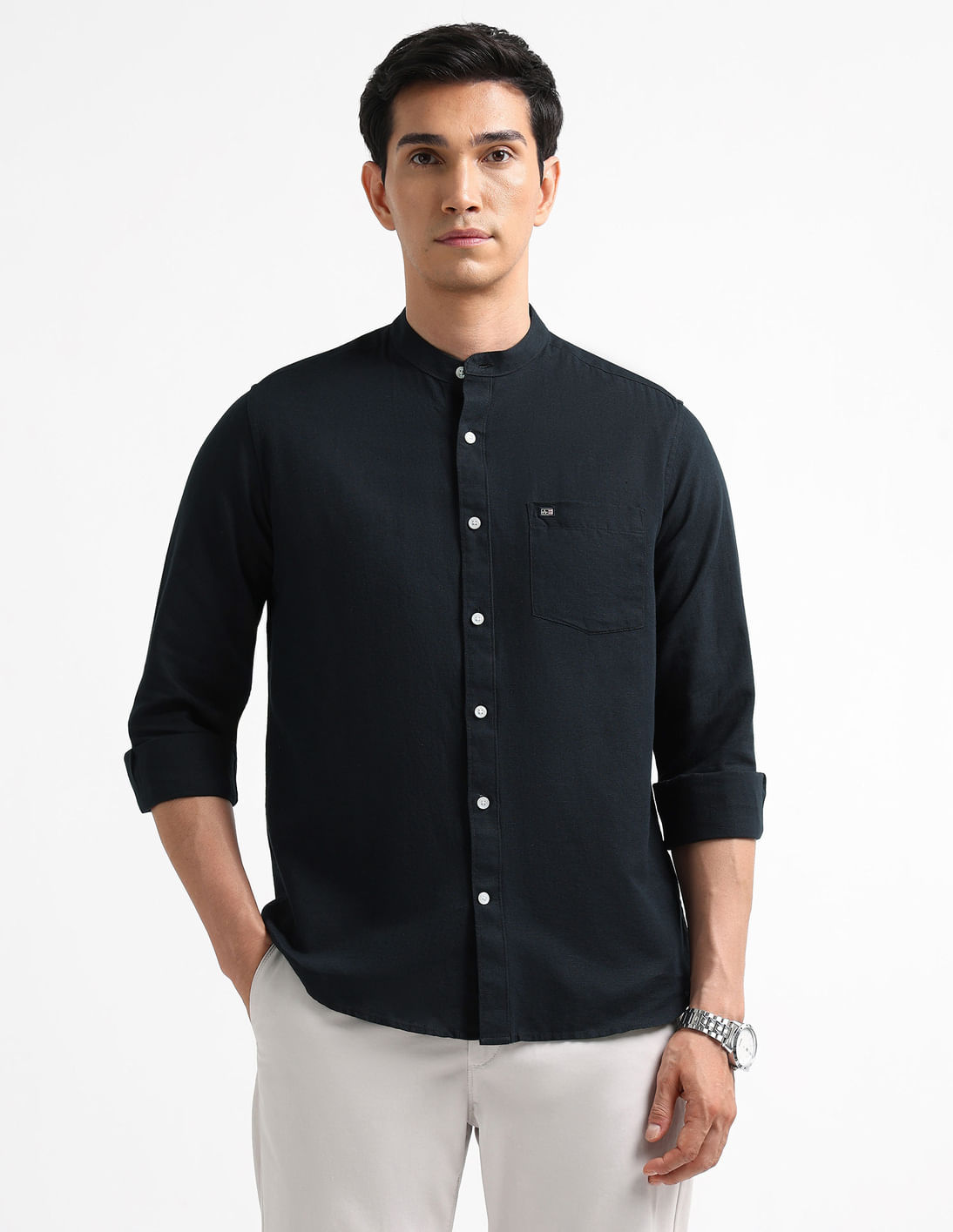 Slim Fit Solid Mandarin Shirt