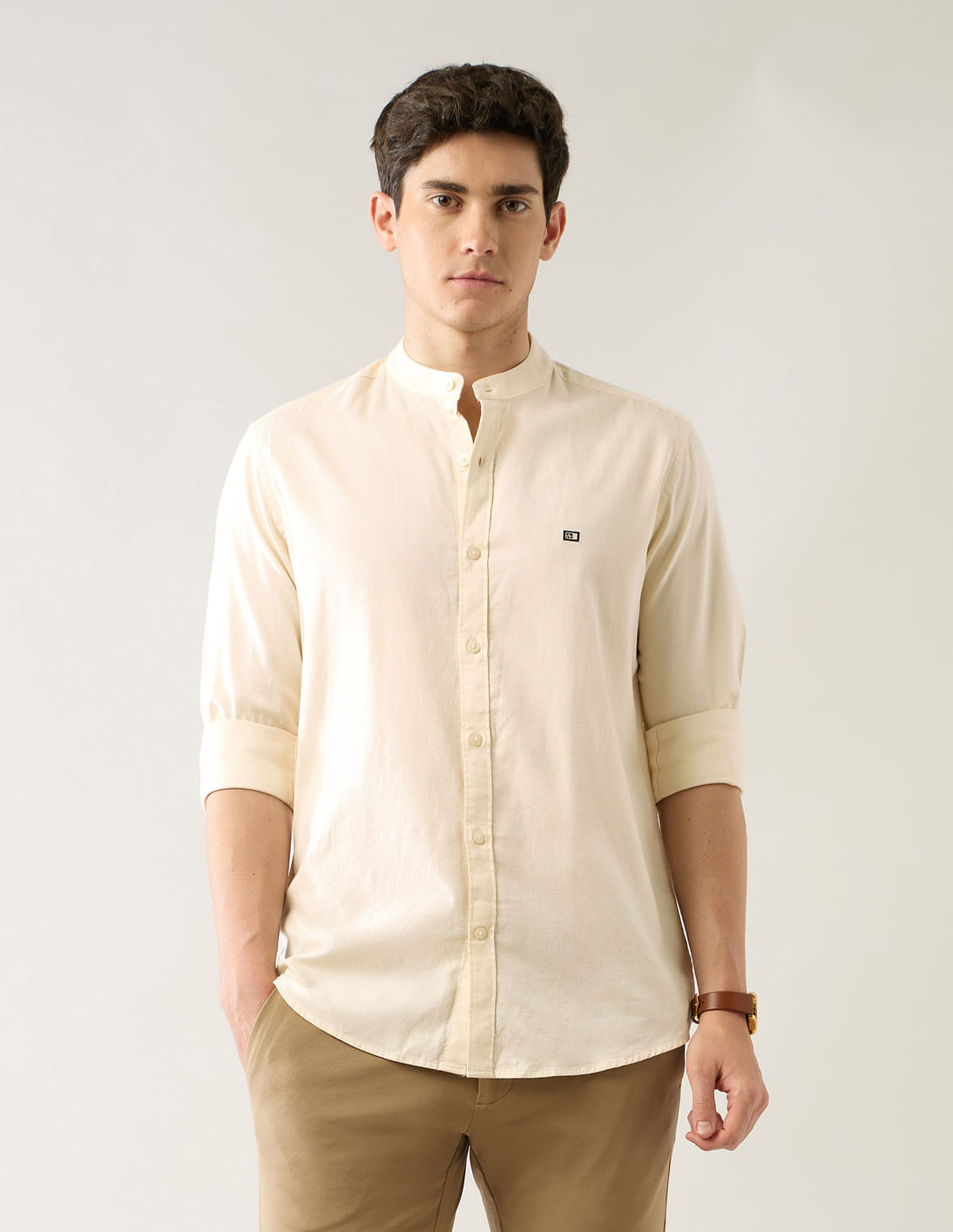 Solid Slim Fit Mandarin Shirt