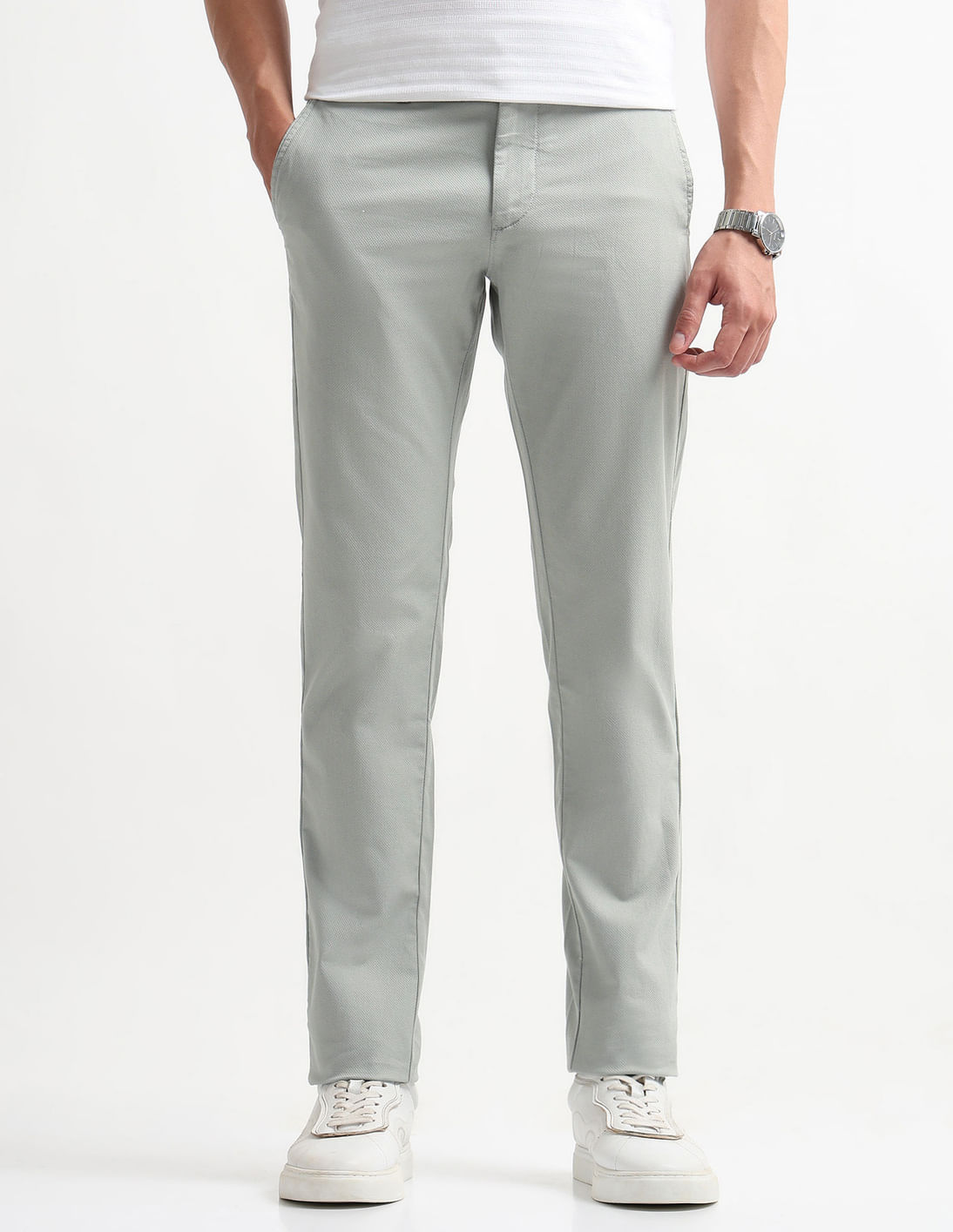 Textured Slim Fit Trousers