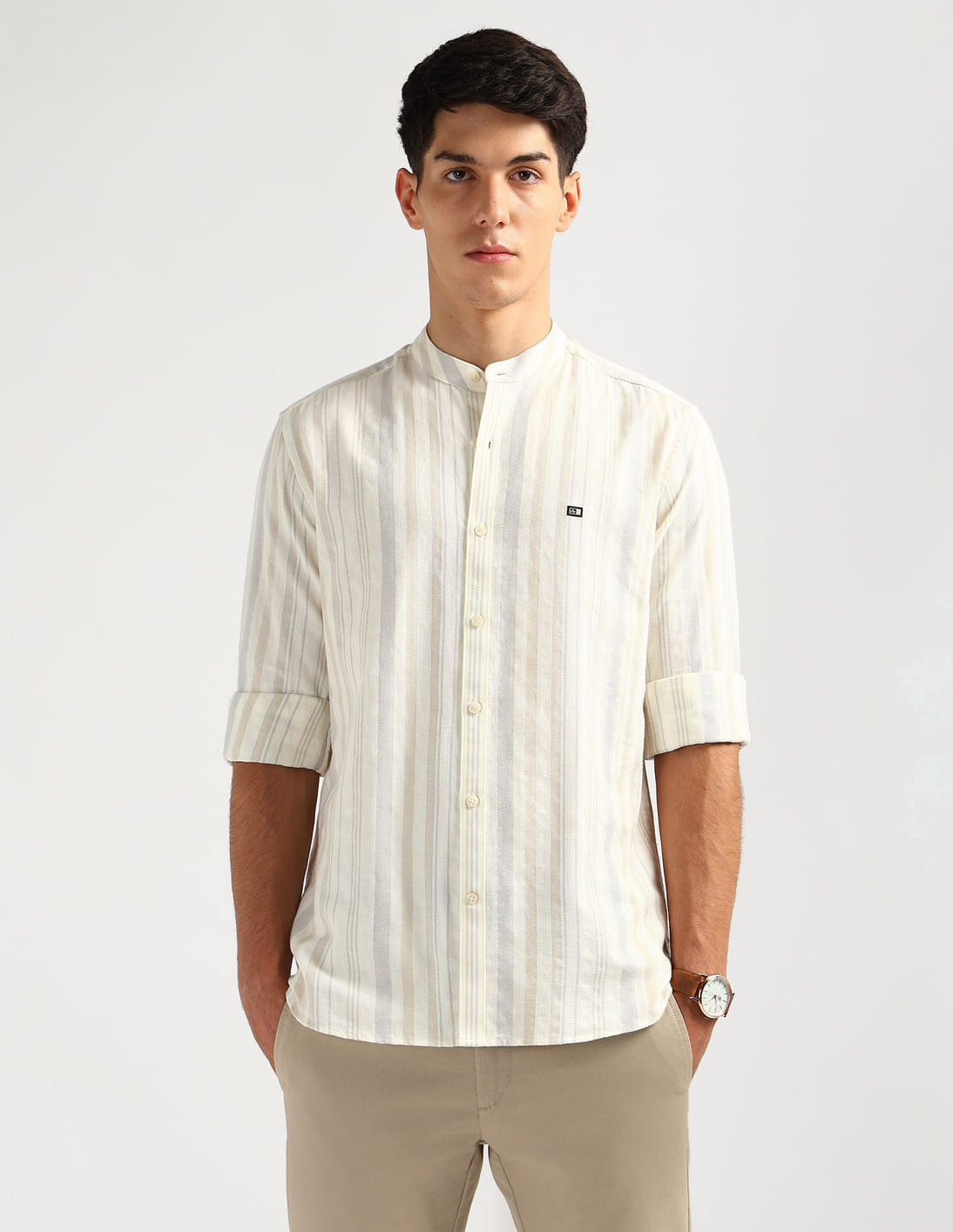 Vertical Striped Mandarin Shirt
