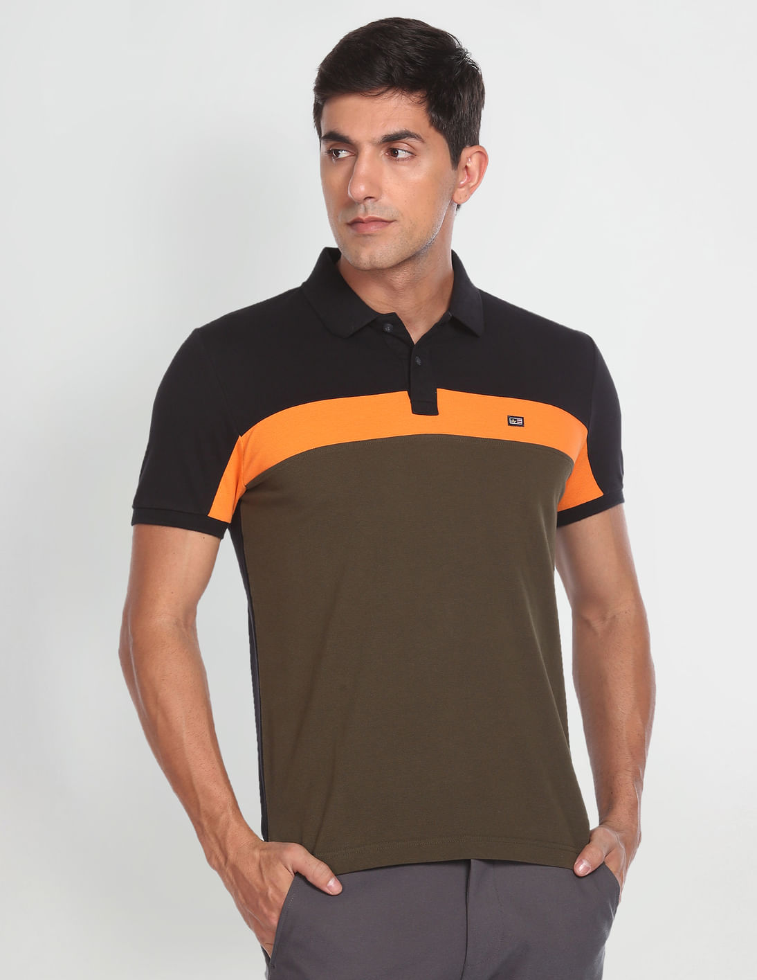 Colour Block Cotton Polo Shirt