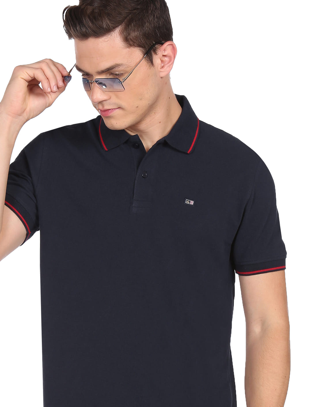 Tipped Collar Pique Cotton Solid Polo Shirt