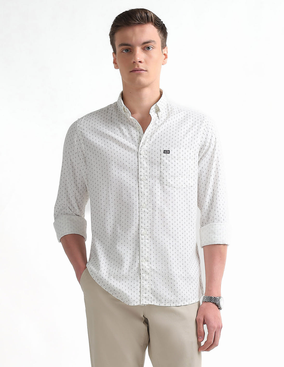 Spread Collar Printed Shirt