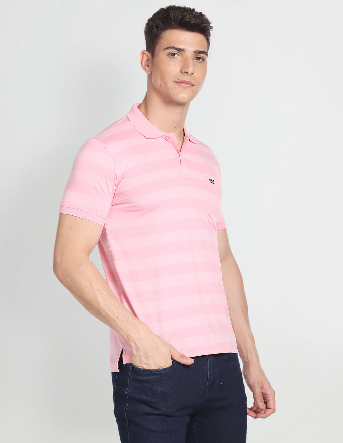 Ribbed Collar Horizontal Stripe Polo Shirt