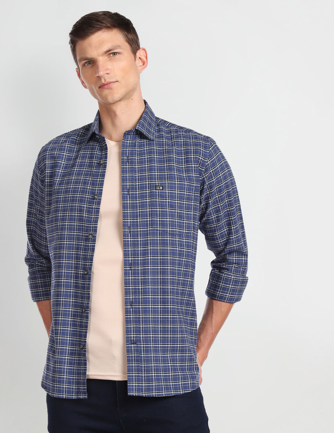Spread Collar Checked Casual Shirt