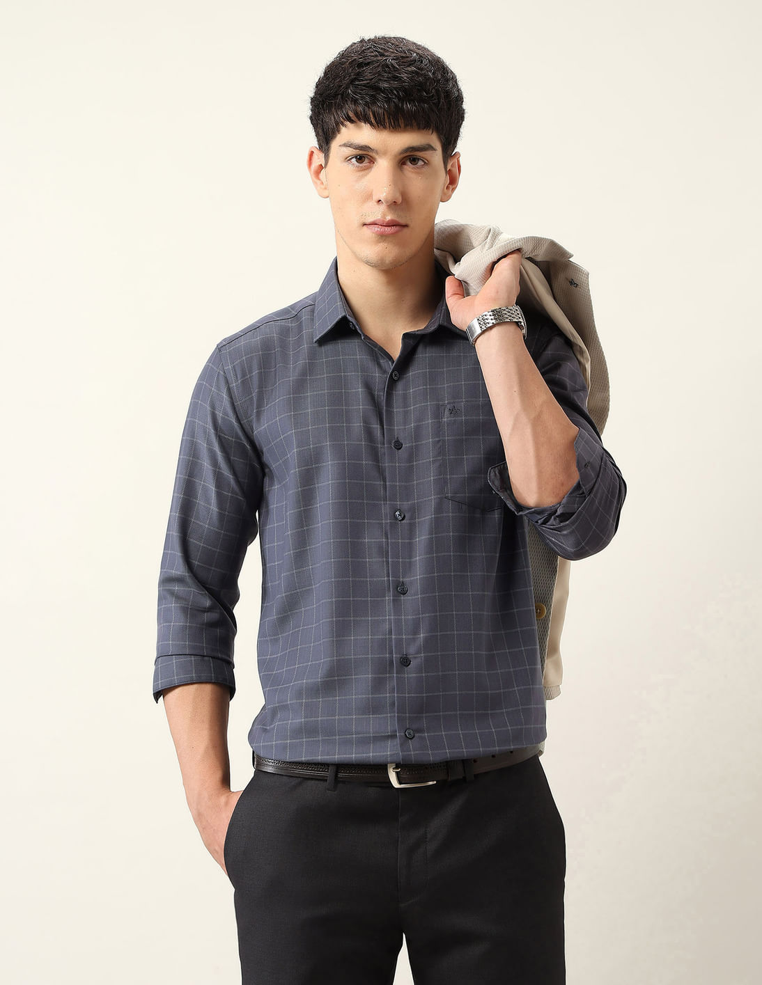 Windowpane Checked Auto Press Shirt