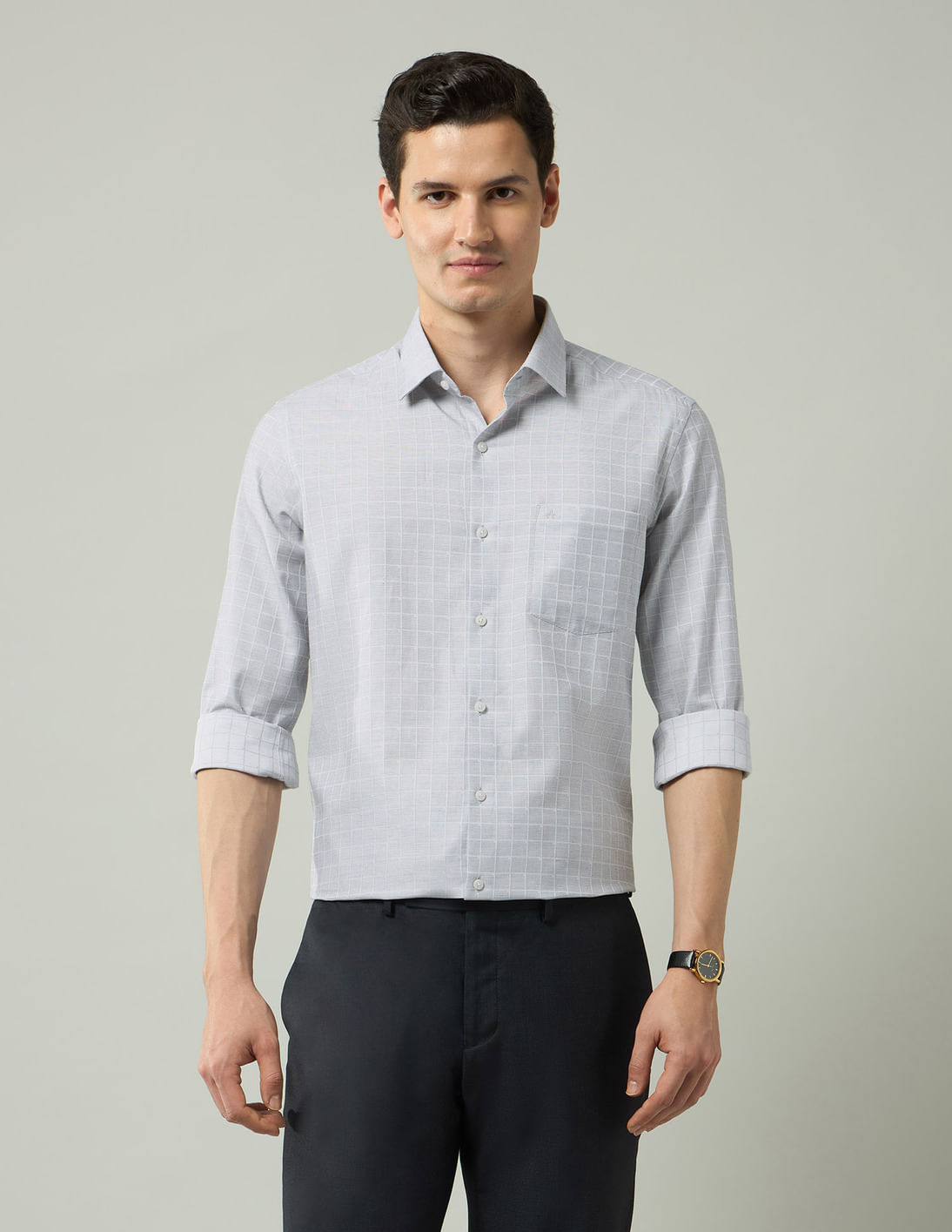Windowpane Checked Manhattan Slim Fit Shirt