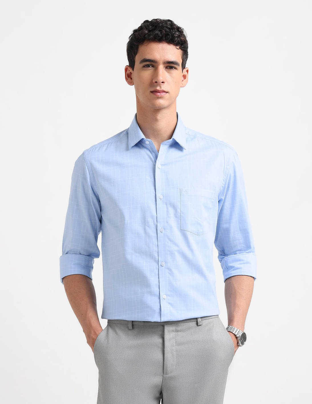 Windowpane Checked Manhattan Slim Fit Shirt