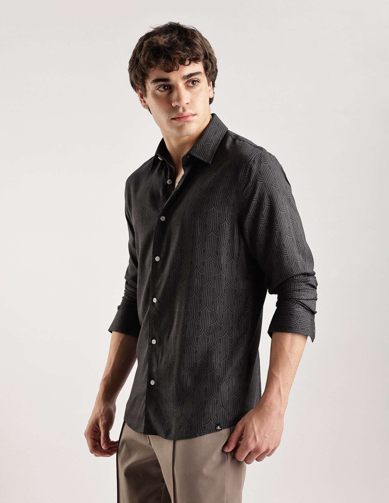 Geometric Slim Fit Poplin Woven Shirt