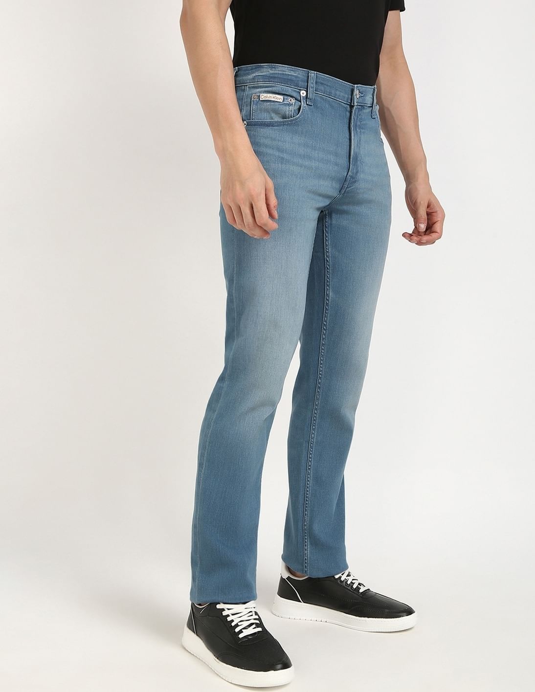 Mid-Wash Slim-Fit Mid Rise Jeans