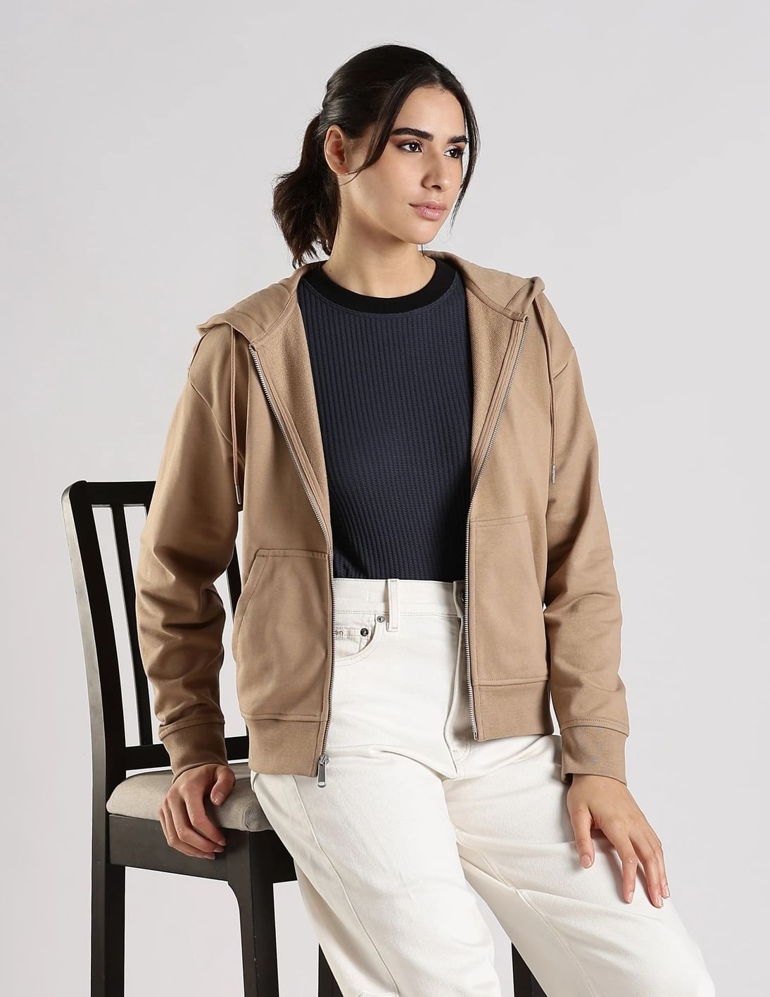 Regular Fit Cotton Hooded Neck Front-Open Sweatshirt