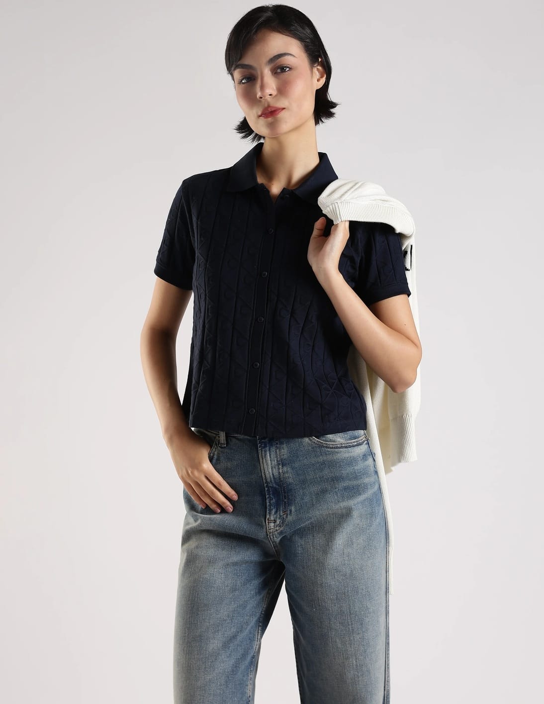 Regular Fit Cotton Spread Collar Top