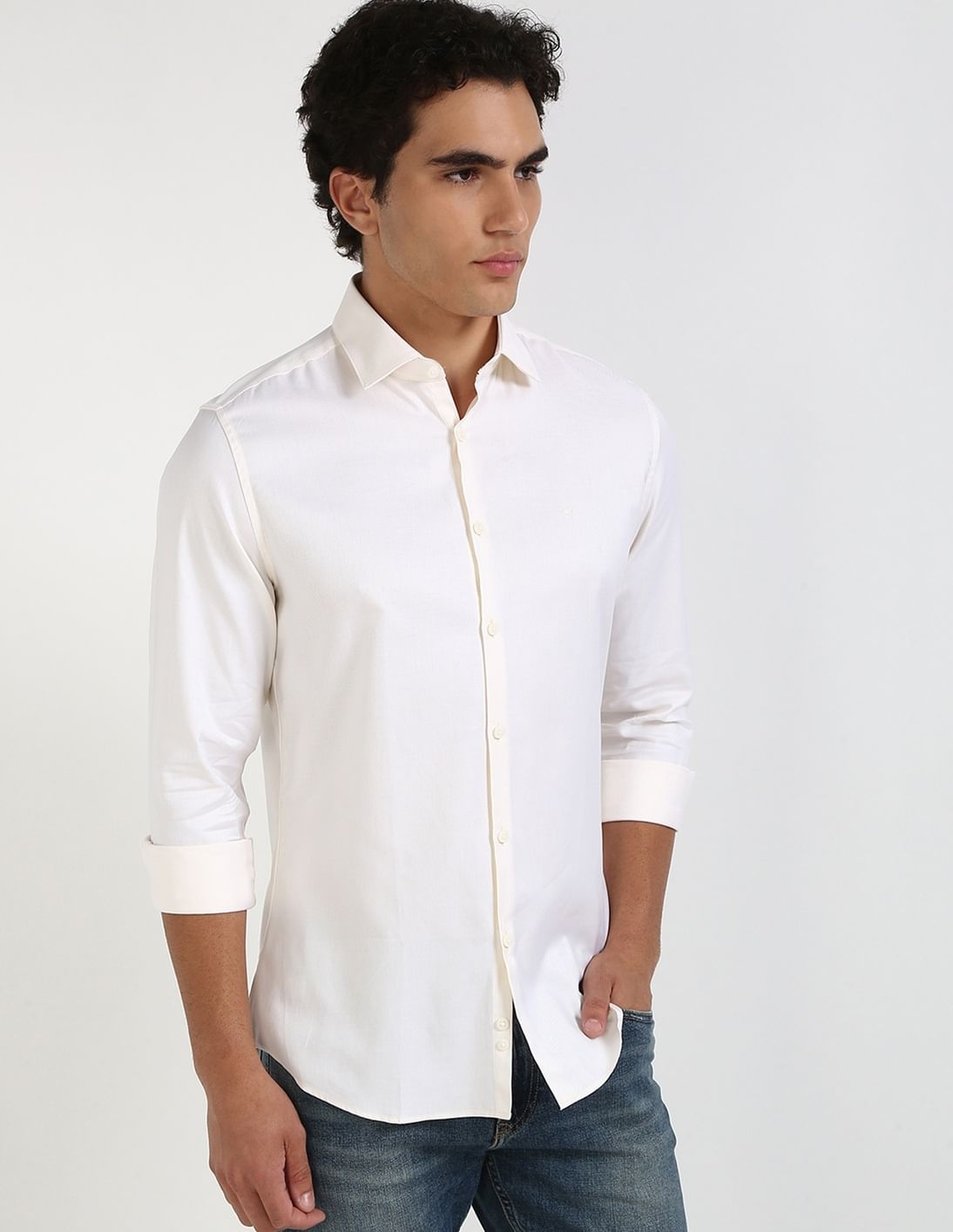 Self Design Slim-Fit Twill Woven Shirt