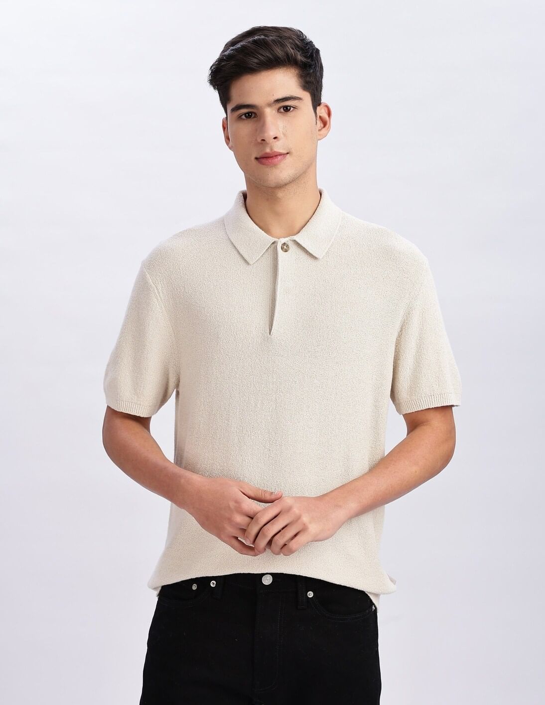 Textured Regular Fit Cotton Polo Shirt