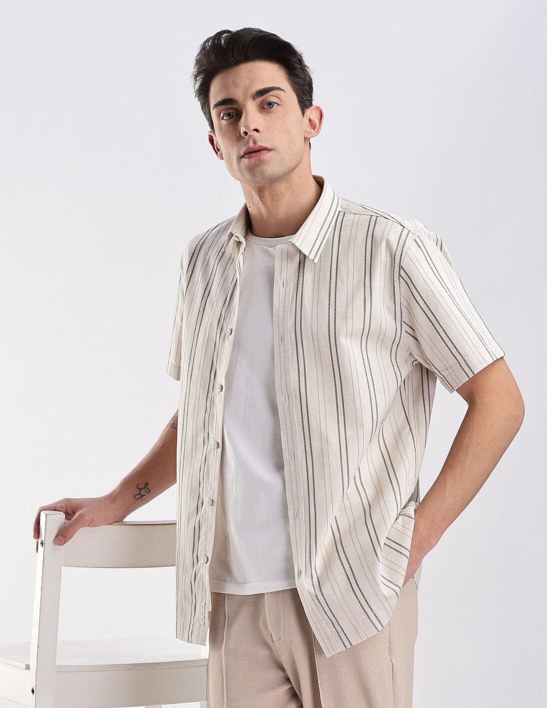 Vertical Stripes Regular Fit Plain Woven Shirt