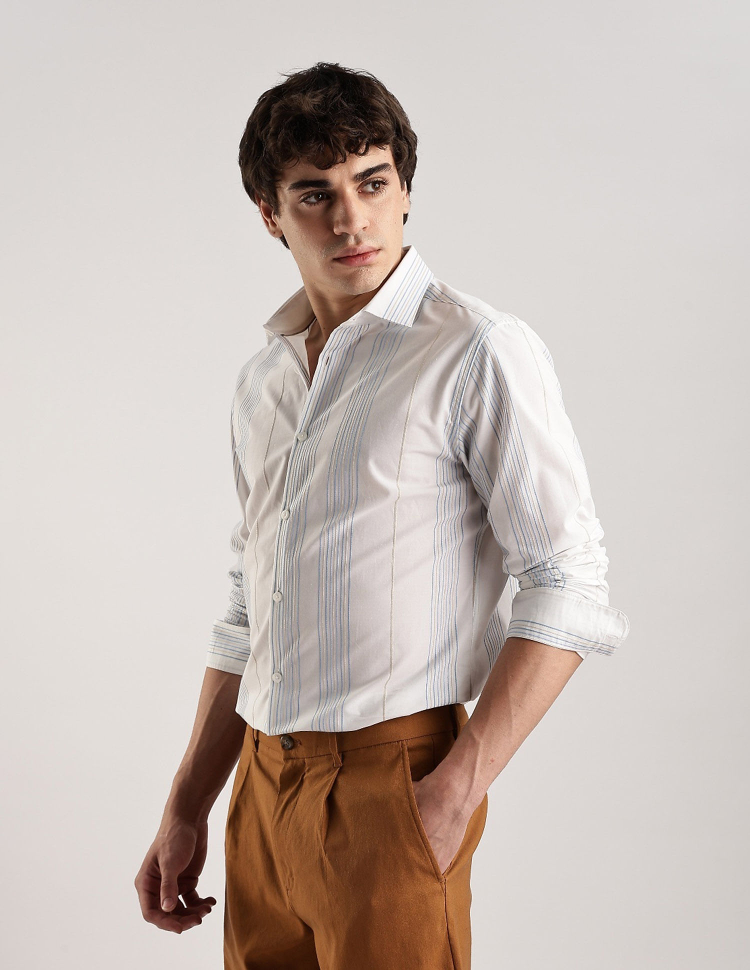 Vertical Stripes Slim Fit Dobby Woven Shirt