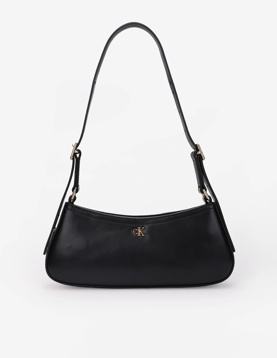 Solid Black Polyester Baguette Bag