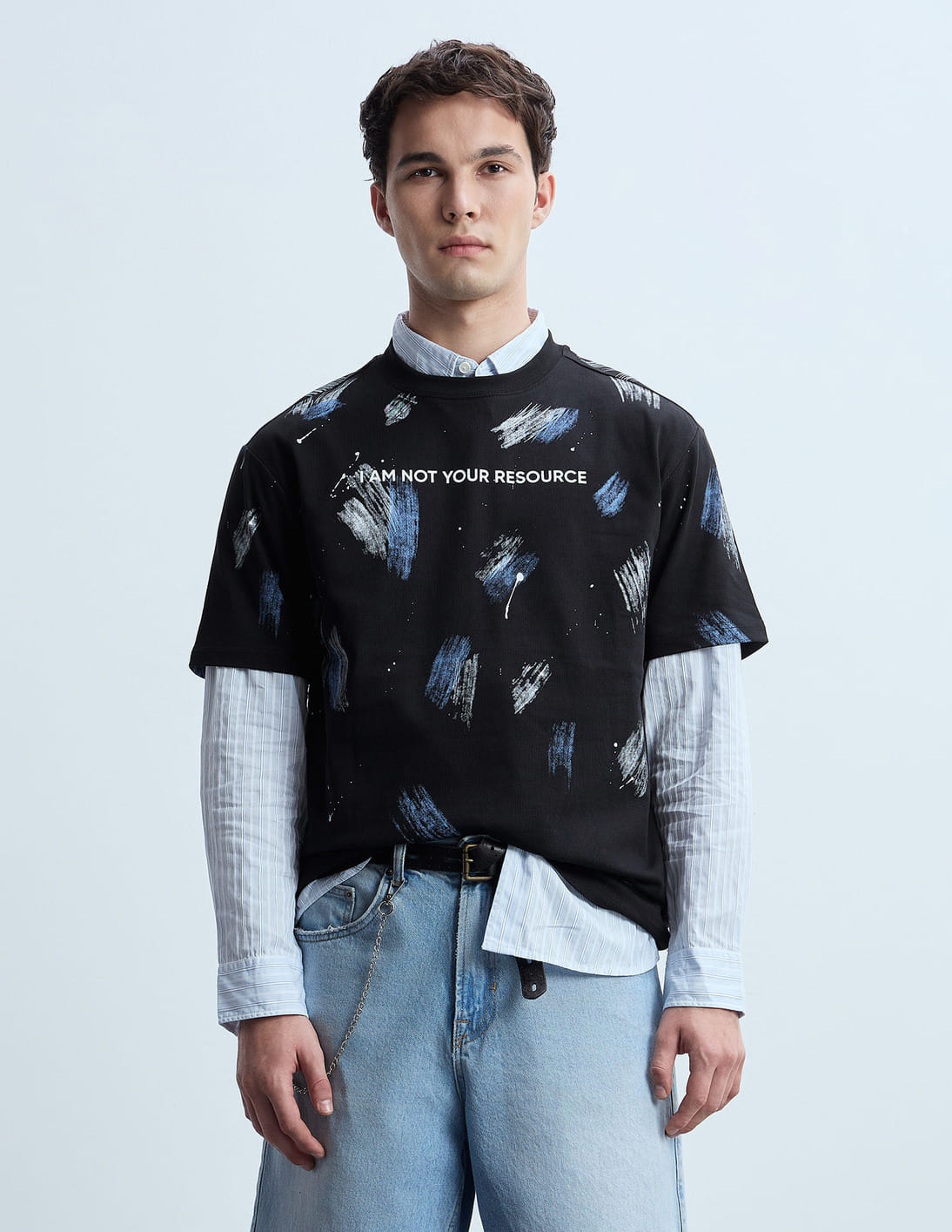 Abstract Printed Typographic Relaxed Fit T-Shirt