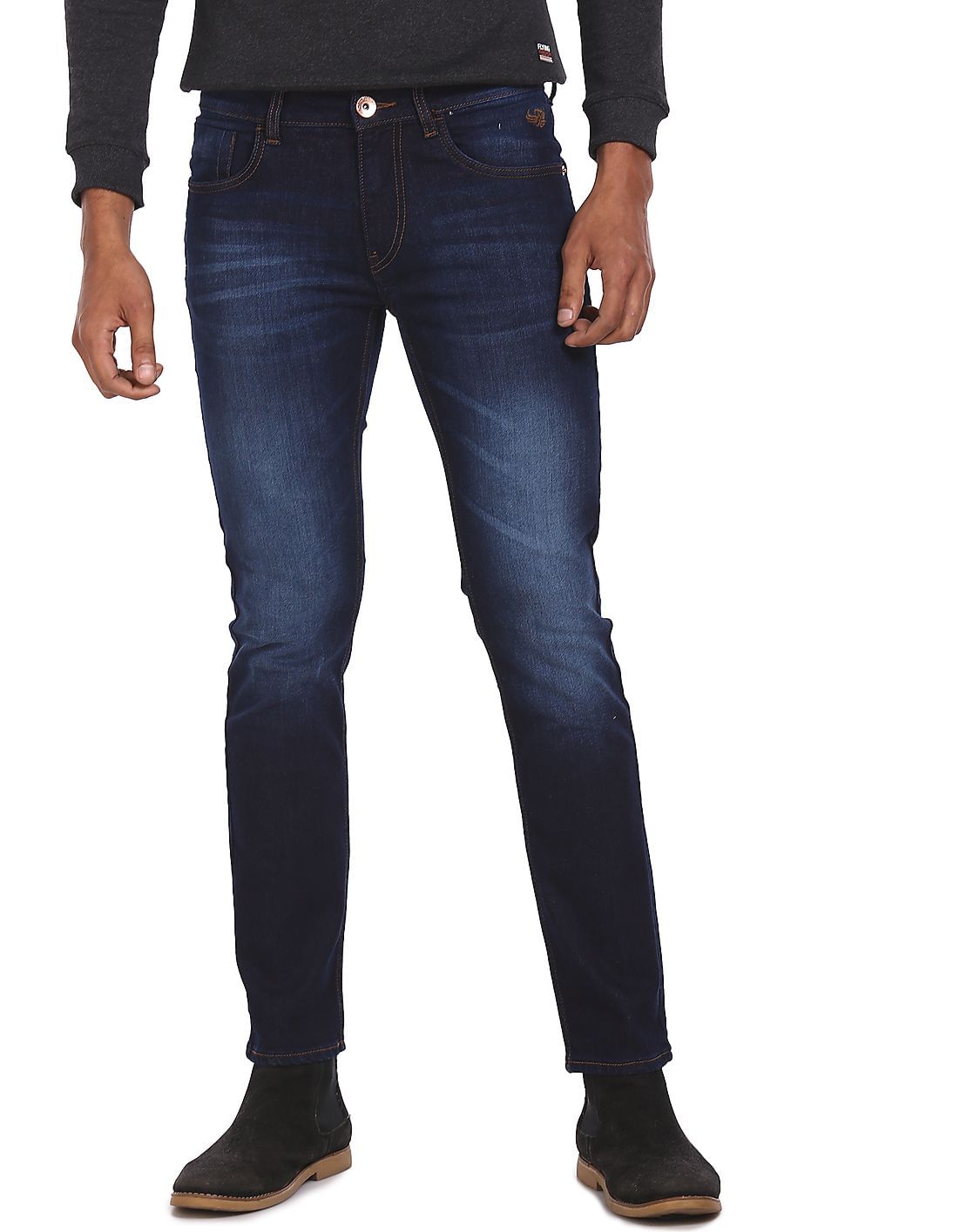Men Blue Stone Wash Michael Slim Tapered Fit Jeans