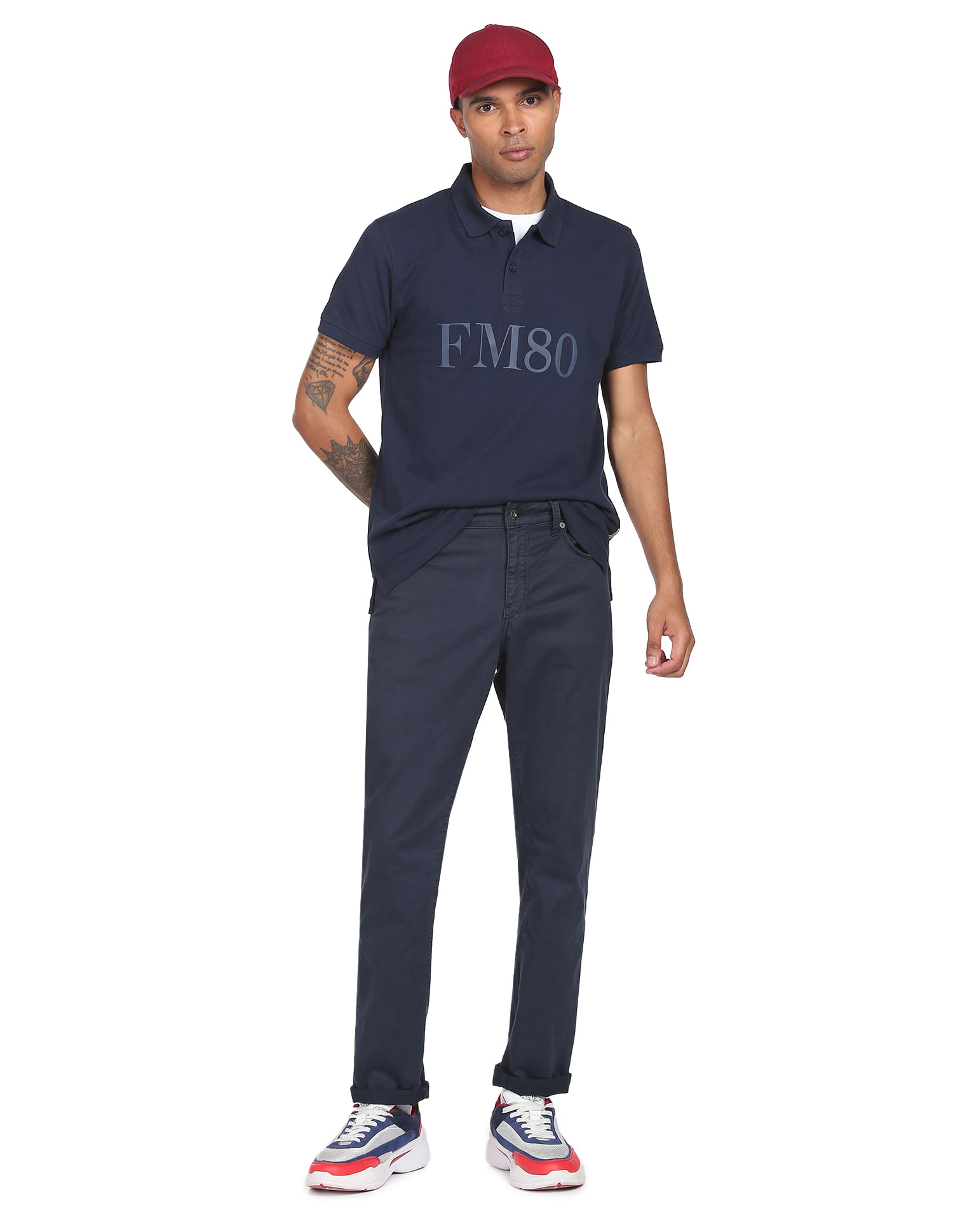 Cotton Pique Typographic Print Polo Shirt