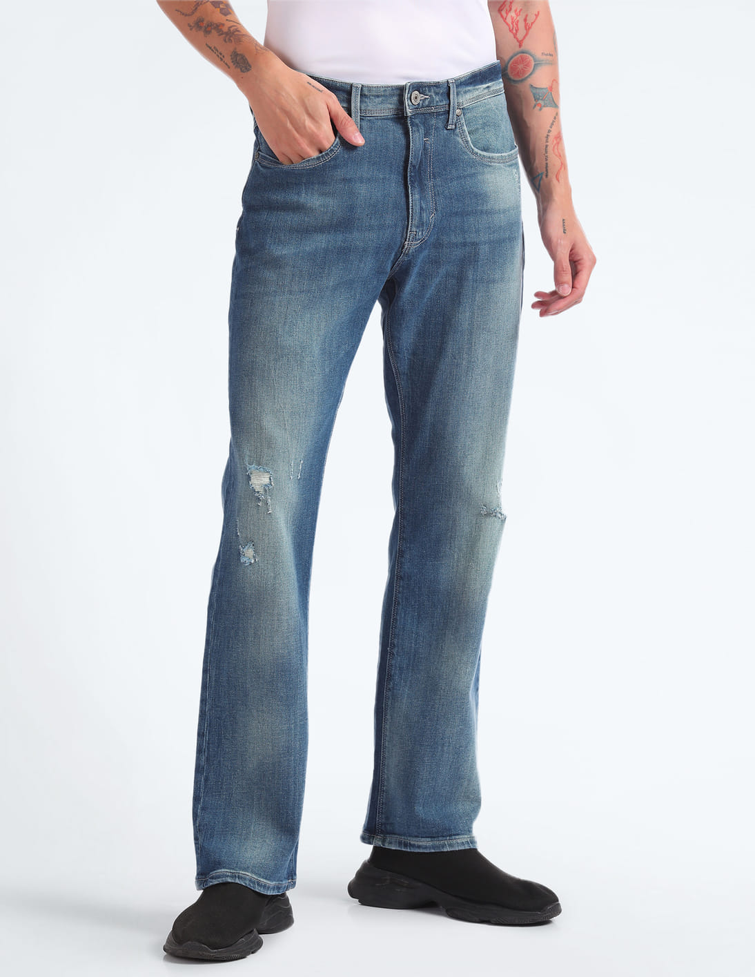 Mid Rise Stone Wash Jeans