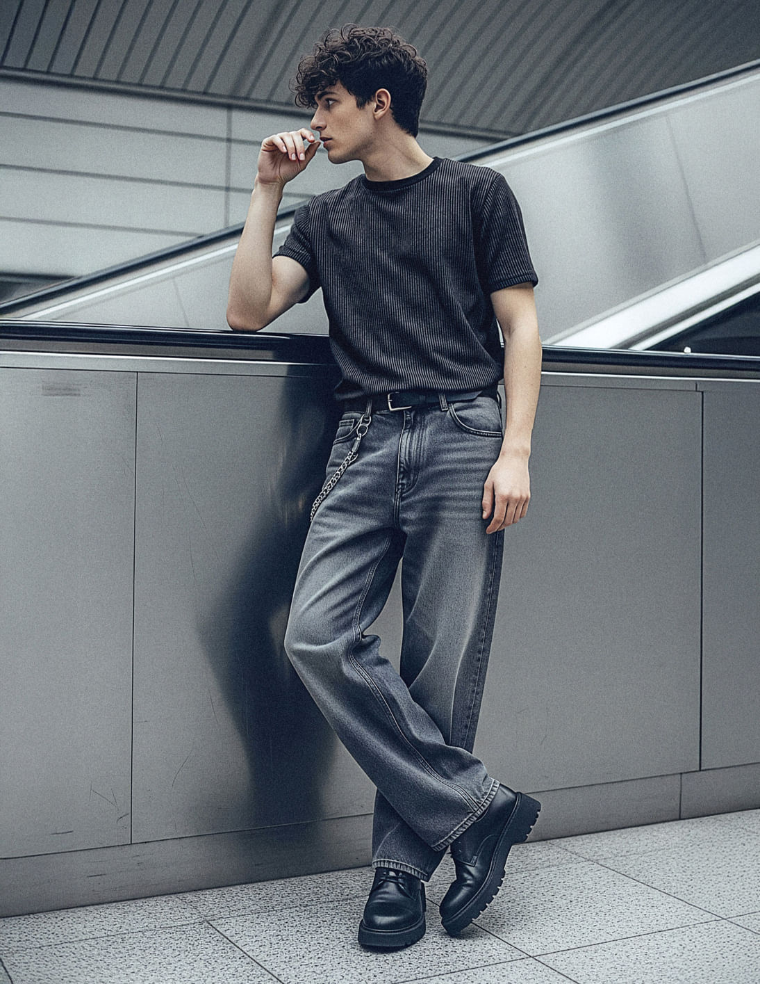Self Design Vertical Striped Relaxed Fit T-shirt
