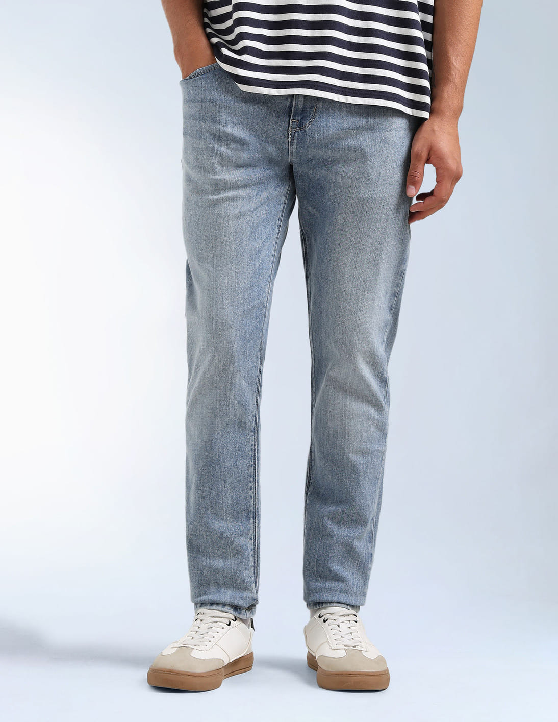 Mid Rise Slash Slim Tapered Fit Jeans