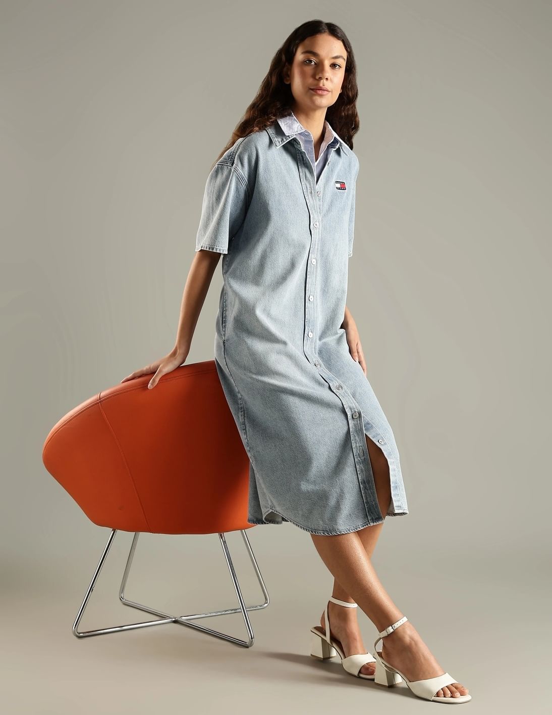 Cotton Spread Collar Denim Dress