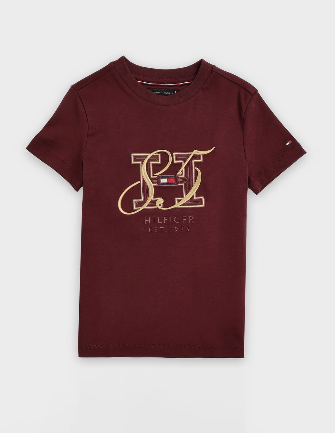 Boys Embroidered Logo Regular Fit Cotton T-Shirt