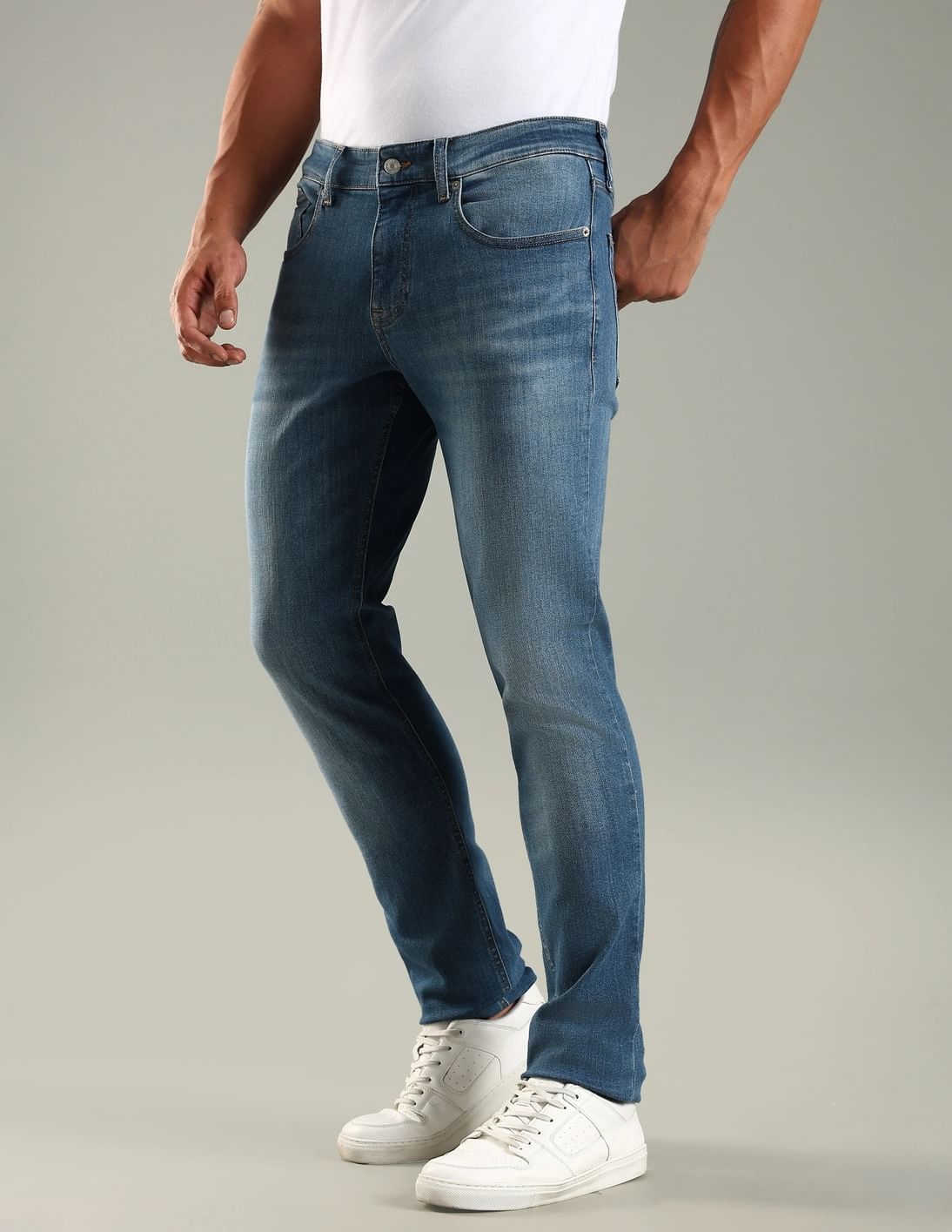 Light-Wash Slim Fit Mid Rise Jeans