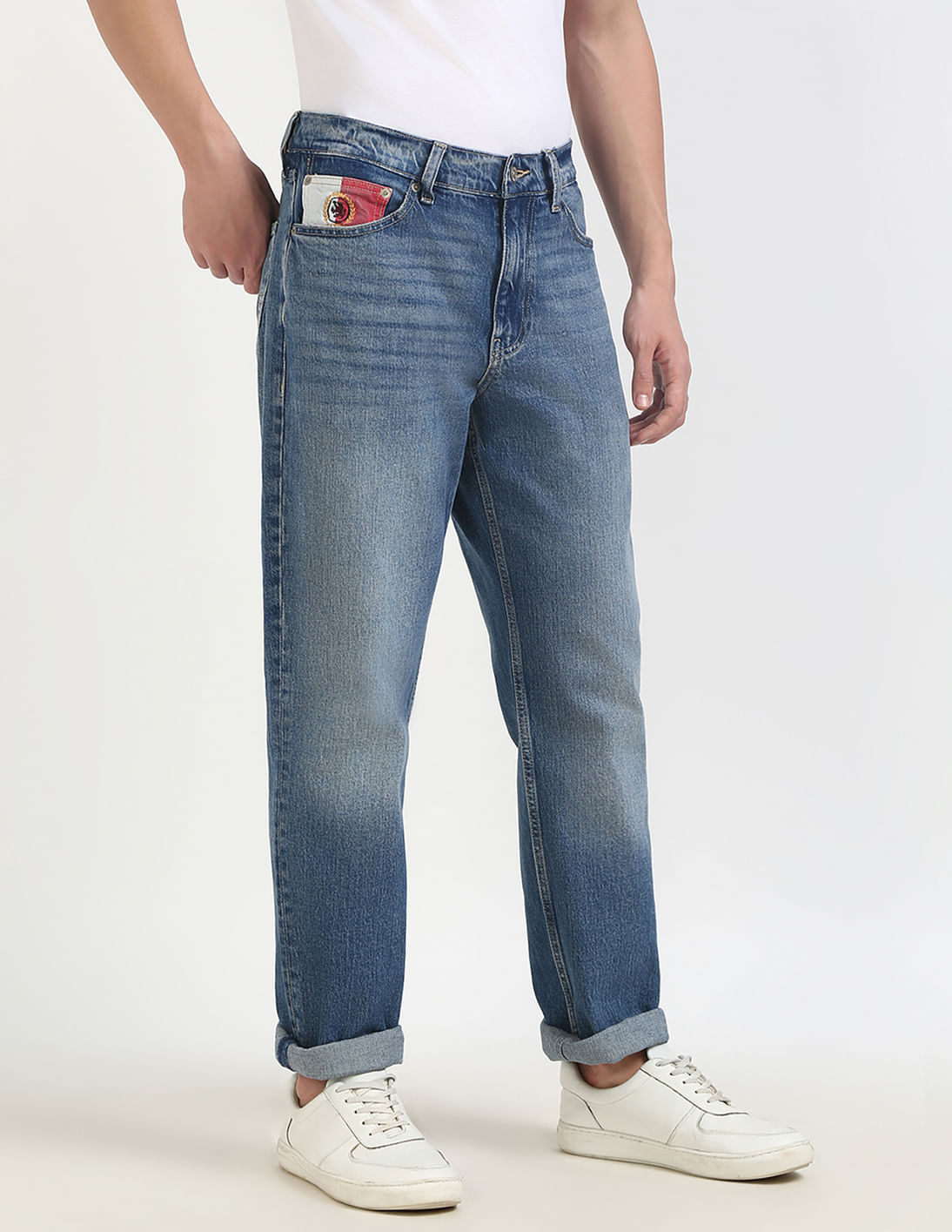 Mid-Wash Slim-Fit Mid Rise Jeans