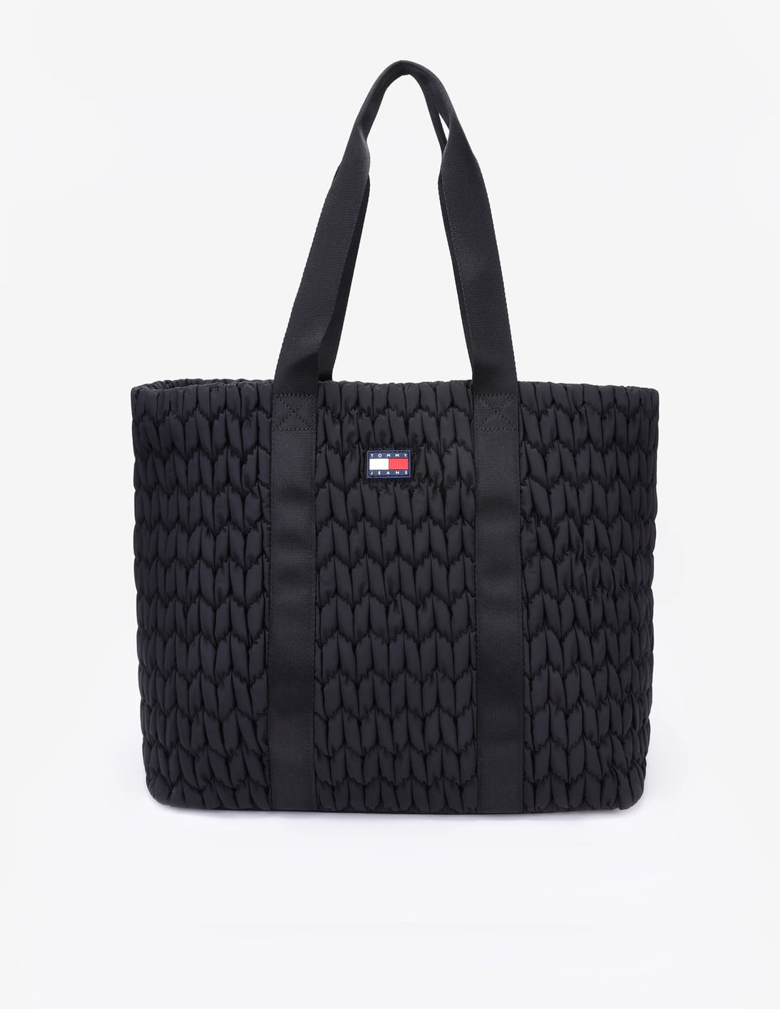 Quilted Black Polyester Tote Bag
