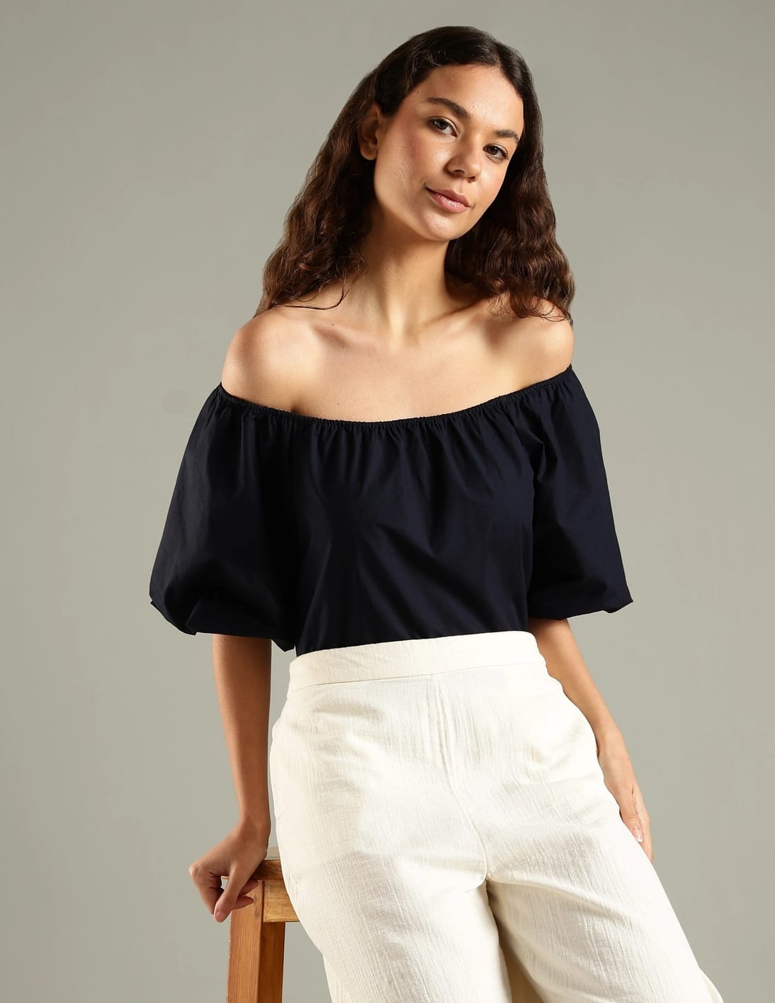Regular Fit Cotton Off-Shoulder Neck Top