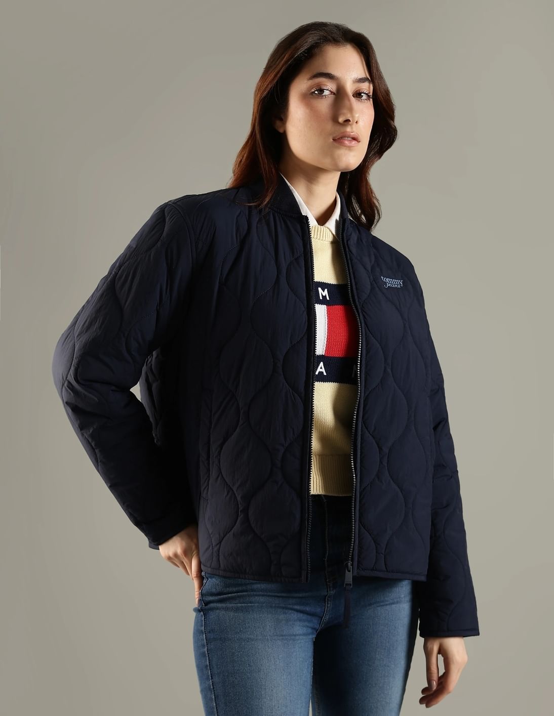 Regular Fit Nylon Baseball Collar Quilted Jacket