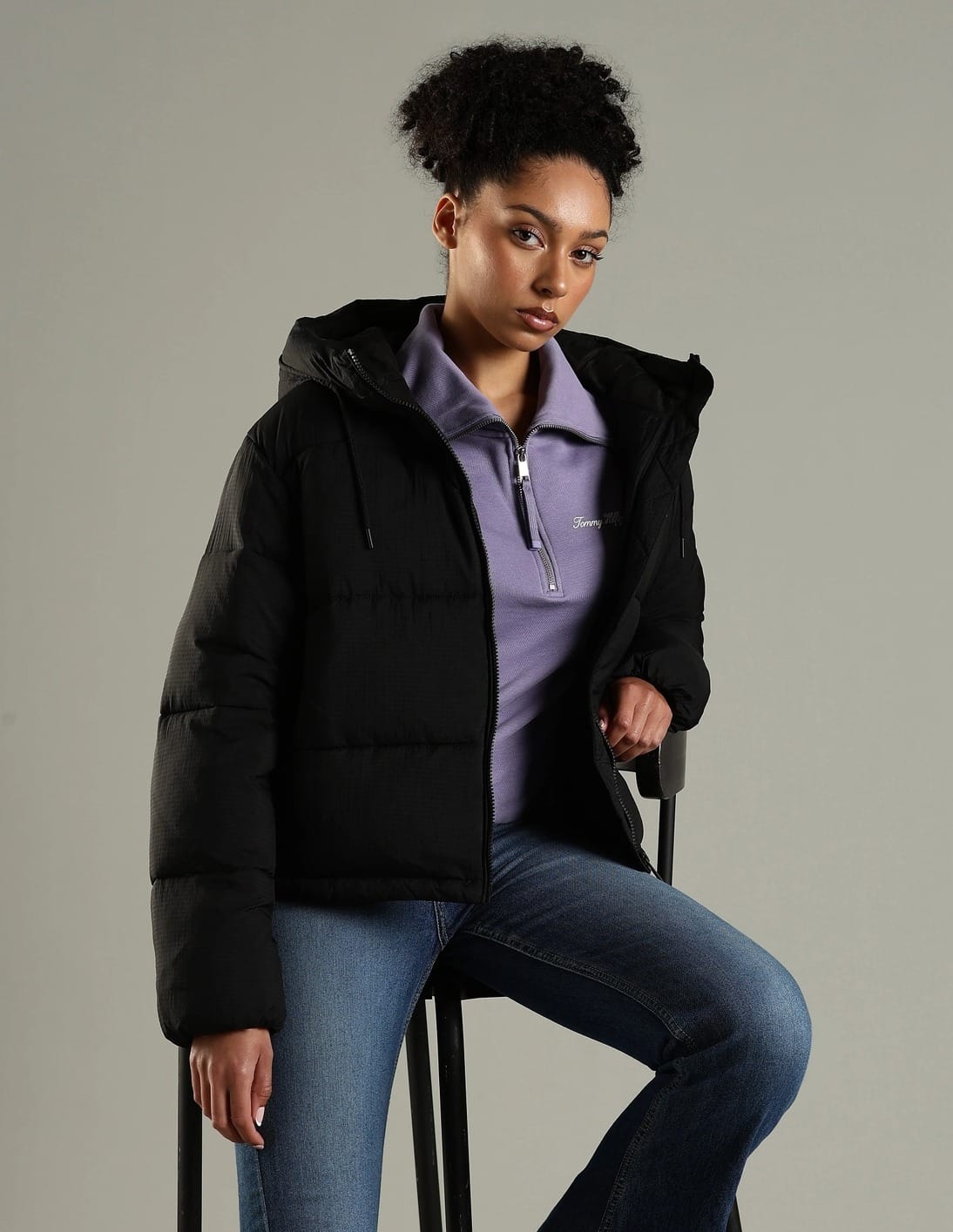 Regular Fit Nylon Hooded Neck Puffer Jacket