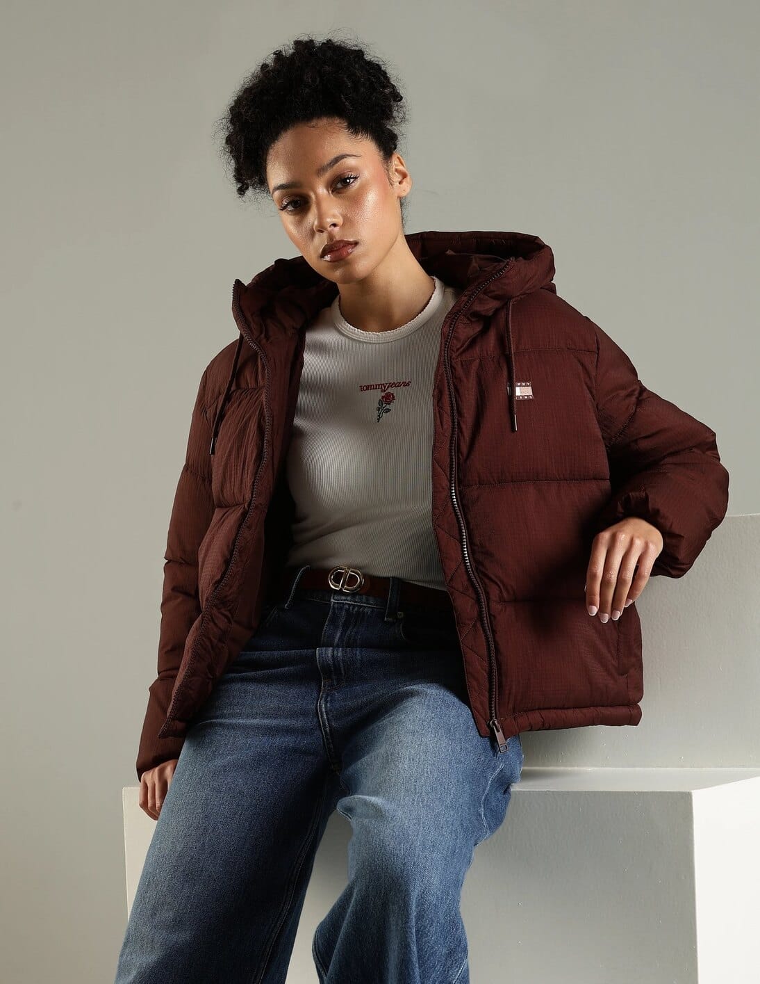 Regular Fit Nylon Hooded Neck Puffer Jacket