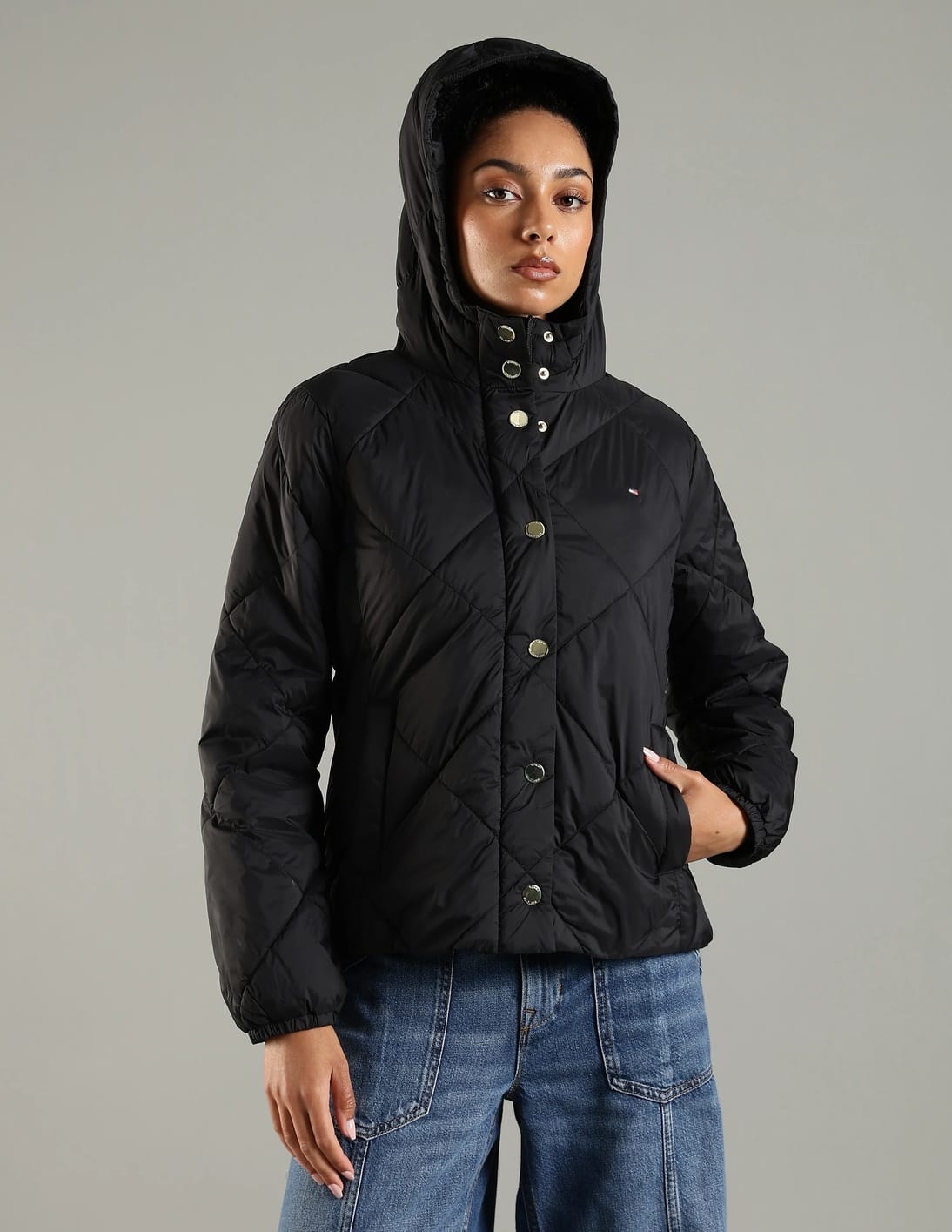 Regular Fit Polyamide Hooded Neck Bomber Jacket