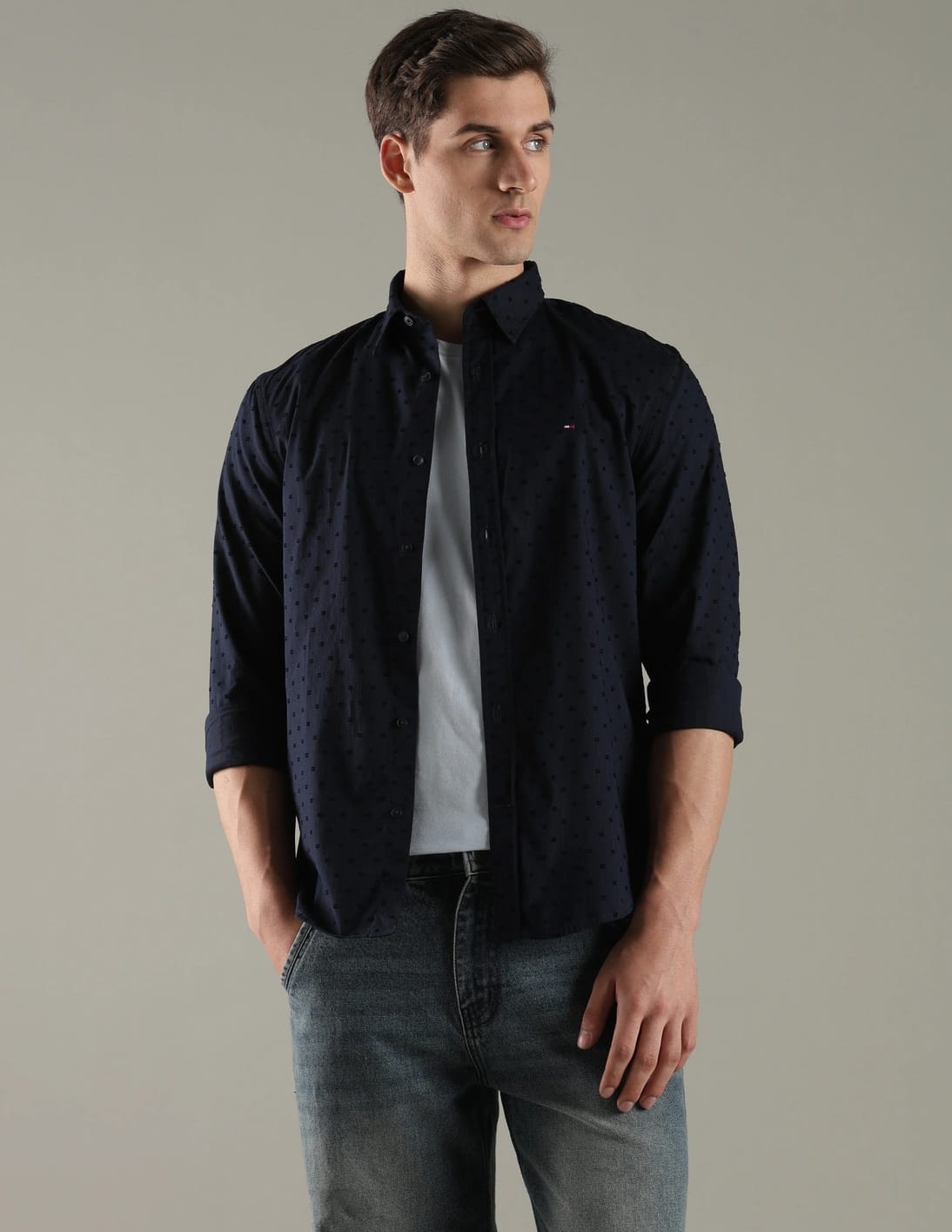 Self-Design Slim Fit Cotton Shirt
