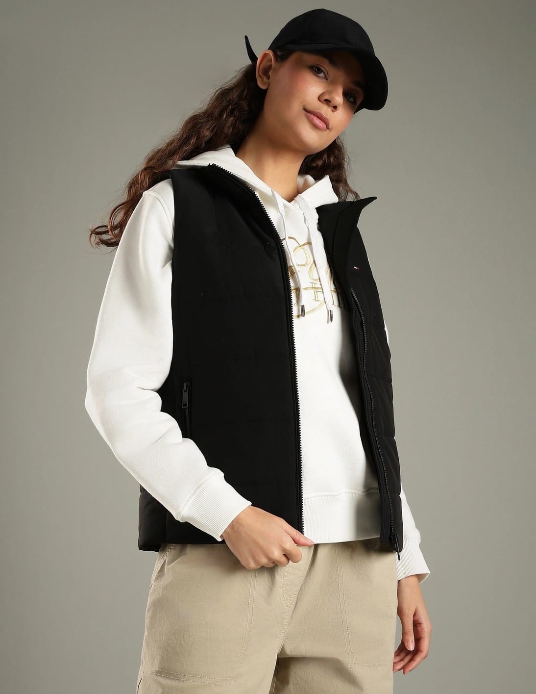 Slim Fit Polyester Mock Neck Puffer Jacket