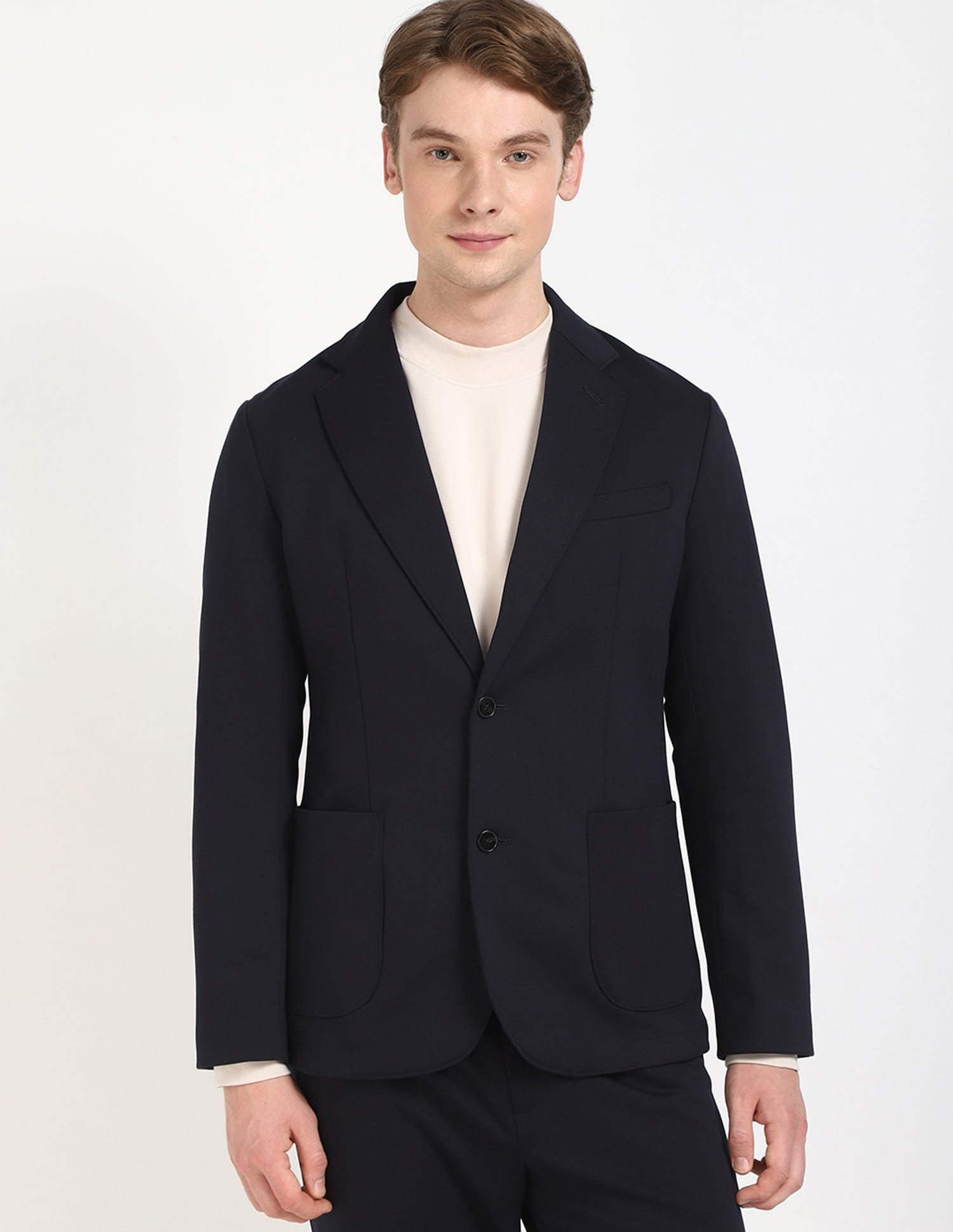 Solid Regular Fit Viscose Single Breasted Blazer