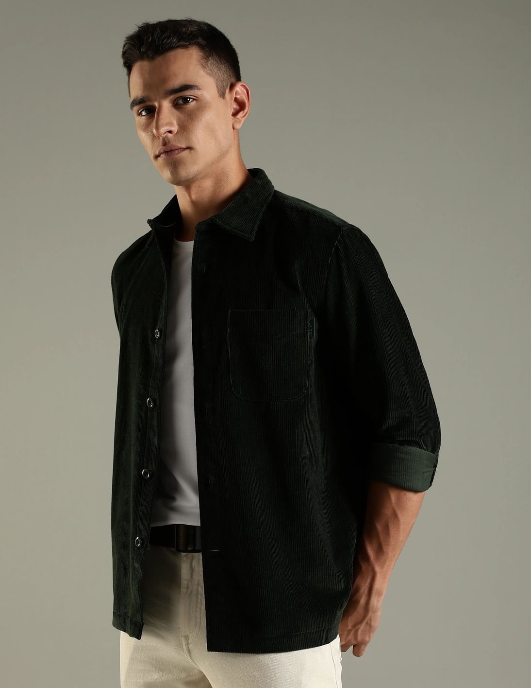 Solid Relaxed Fit Cotton Shirt