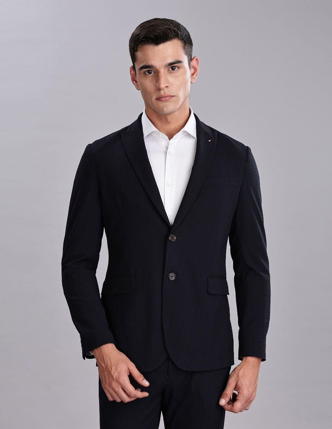 Striped Regular-Fit Polyester Single Breasted Blazer